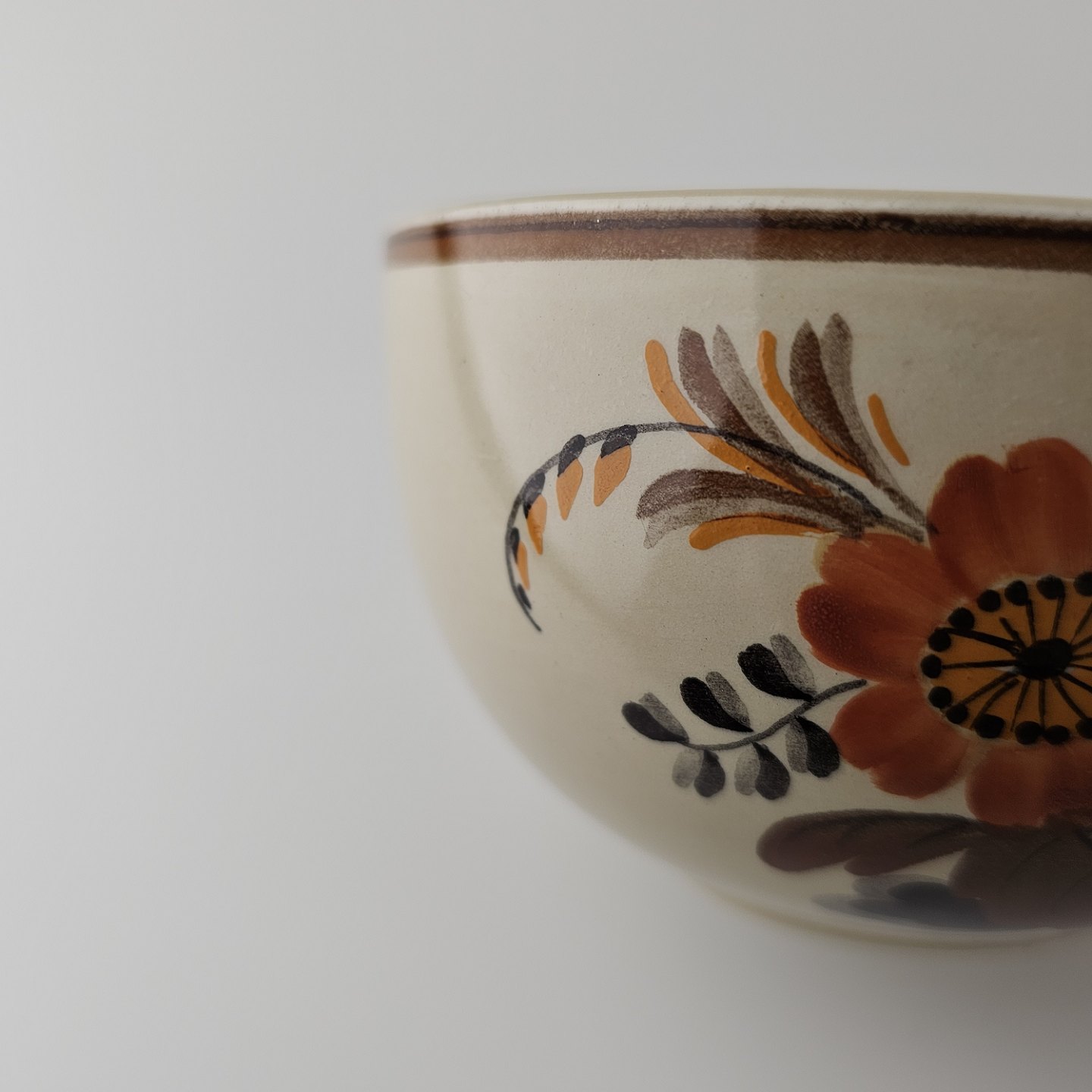 Knud er cremefarvet fajance dekoreret med flettet kant og brune og orange blomster. Stellet blev produceret i år 1934-1963.