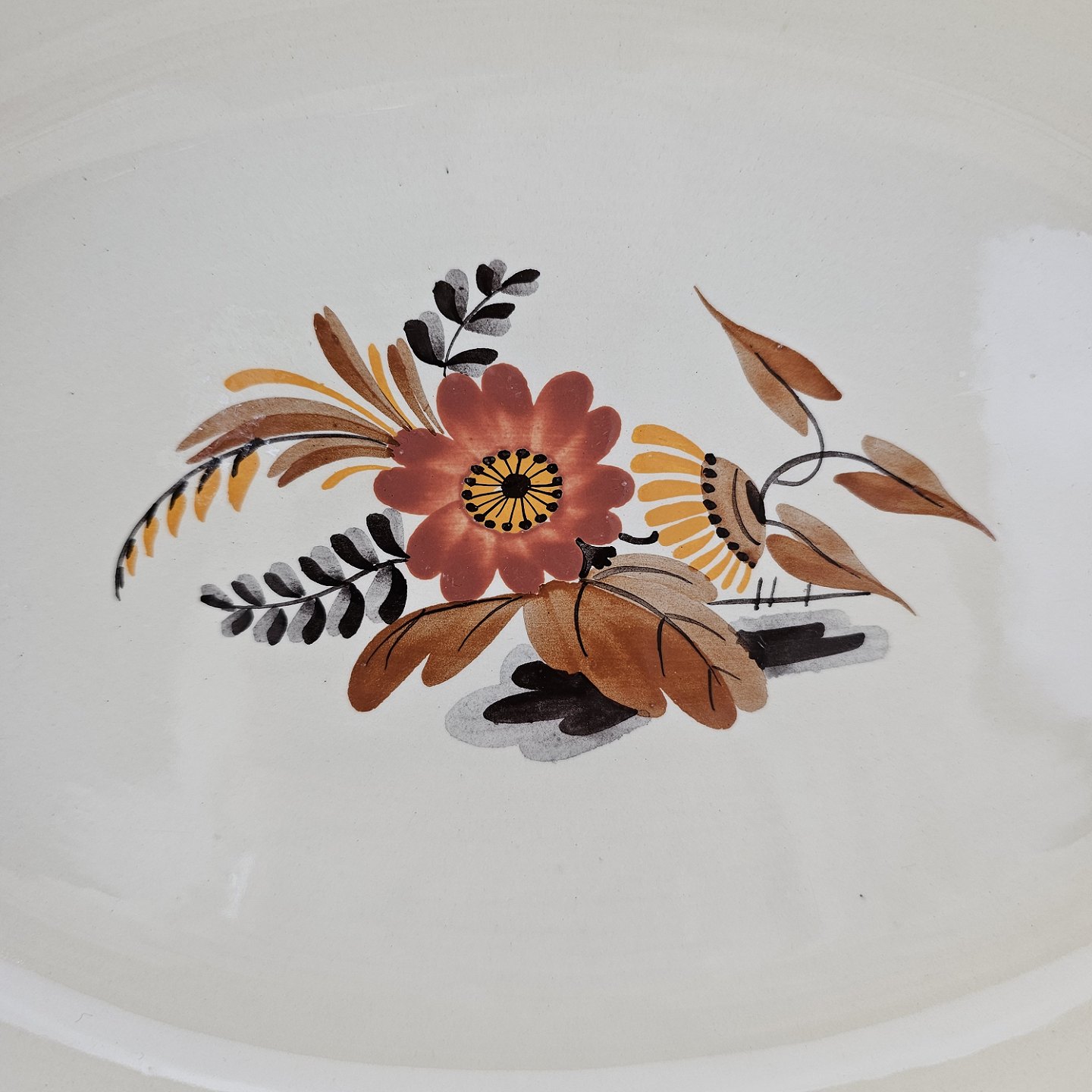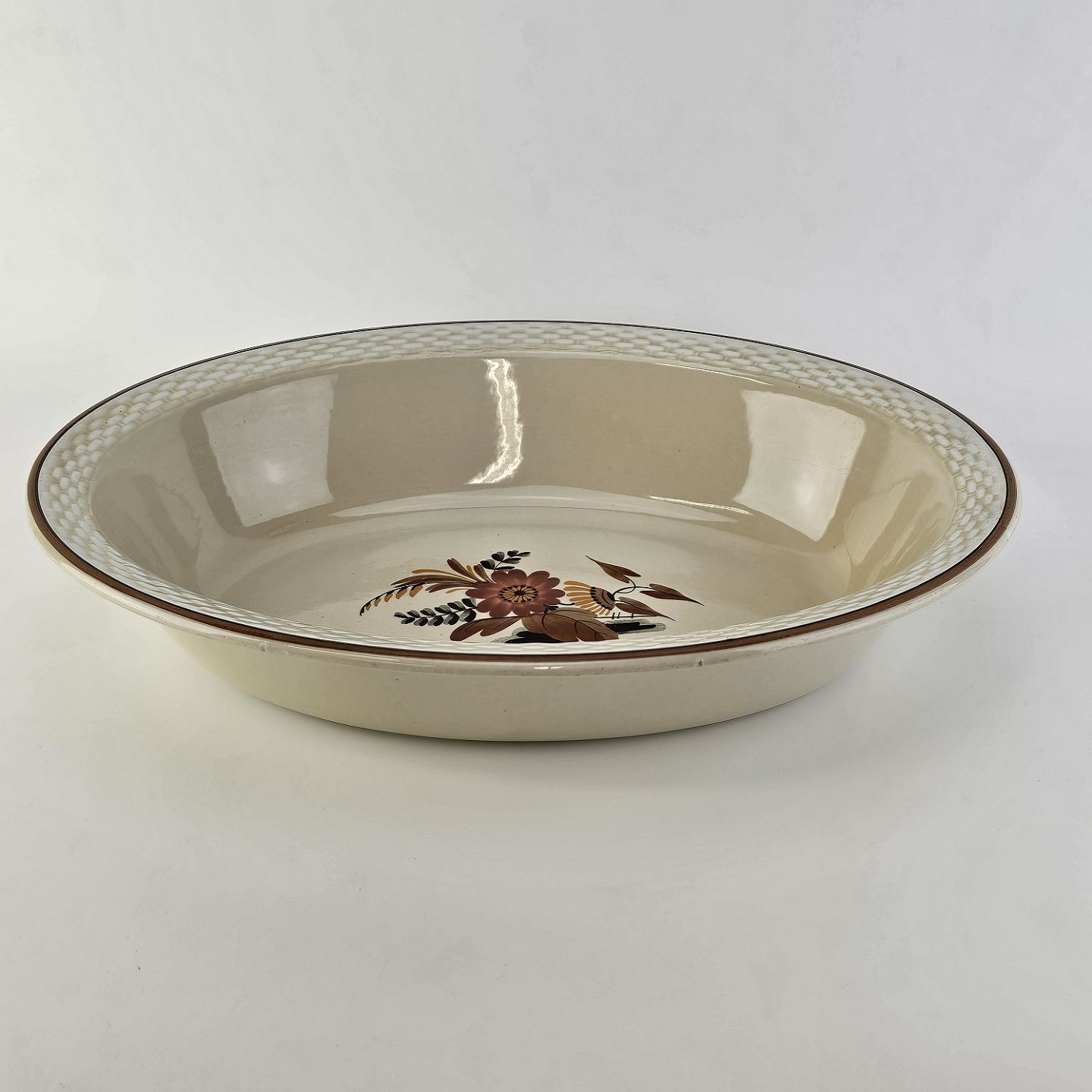 Knud er cremefarvet fajance dekoreret med flettet kant og brune og orange blomster. Stellet blev produceret i år 1934-1963.