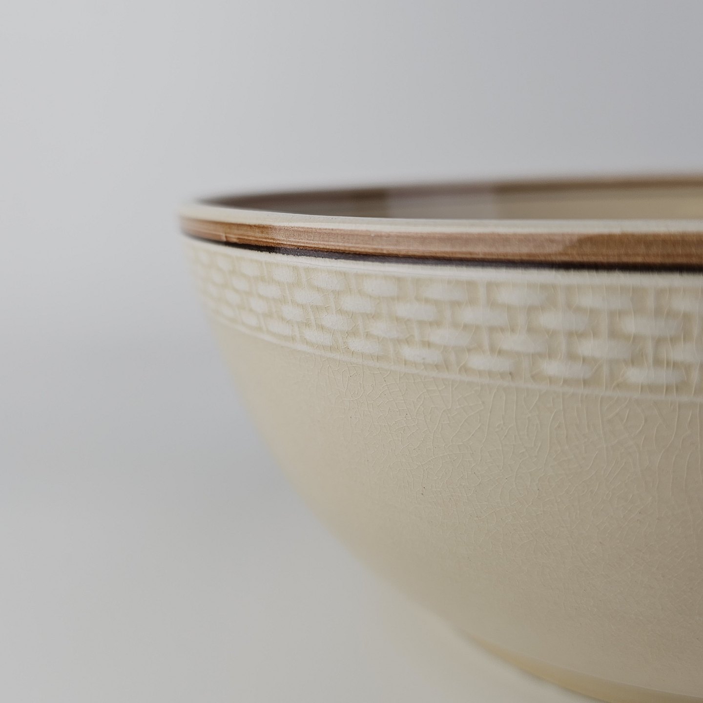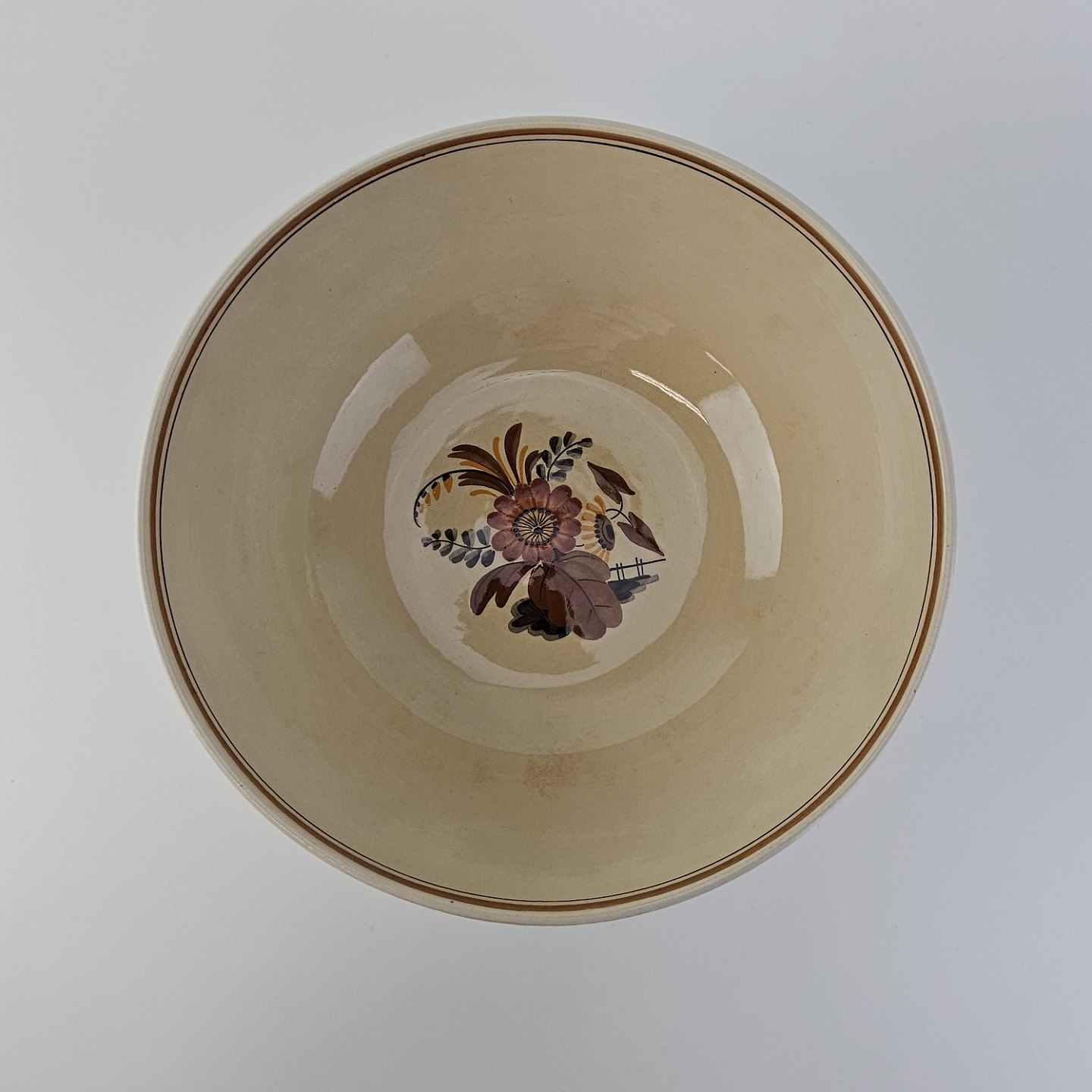 Knud er cremefarvet fajance dekoreret med flettet kant og brune og orange blomster. Stellet blev produceret i år 1934-1963.