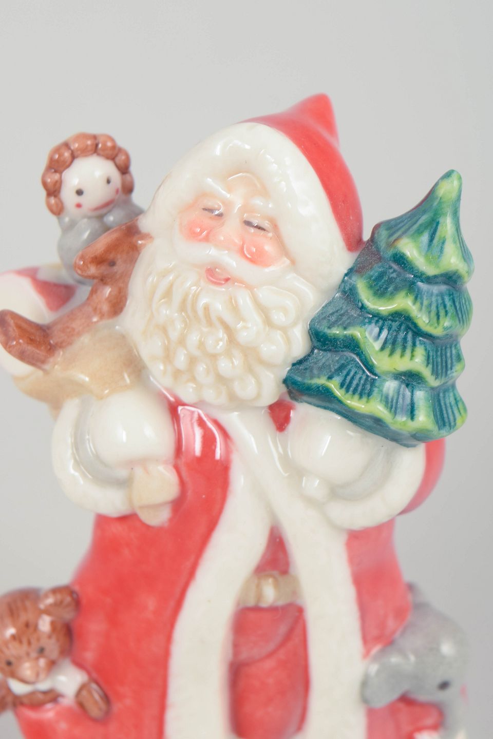 Decorative Santa Claus figurine in hand-painted porcelain from 2002, designed with gift sack over the shoulder. The figure is finely modelled with classic red coat, white fur trim and black belt. First factory quality. Comes with original box.