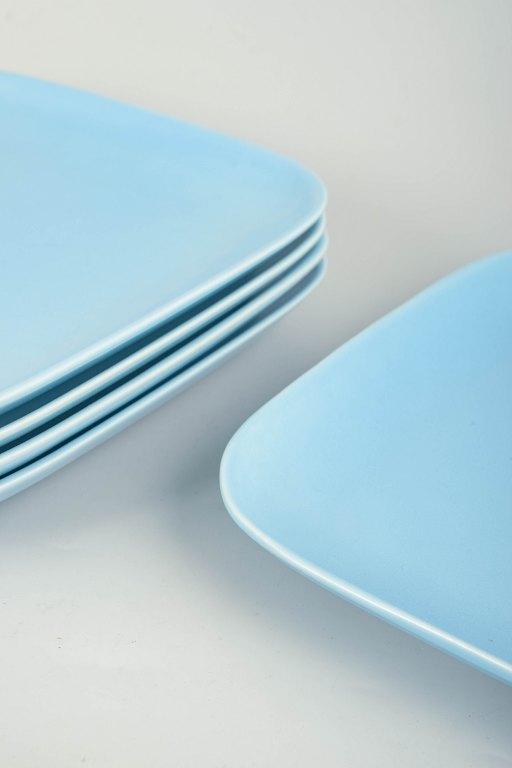 Höganäs Keramik, set of five dinner plates in turquoise glaze.