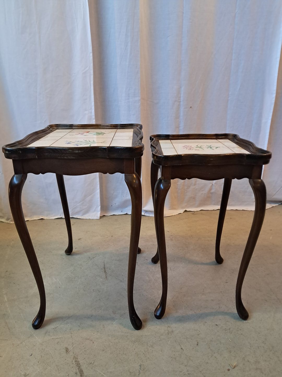 2 Borde i bøgetræ med kakler, fra 1980erne.