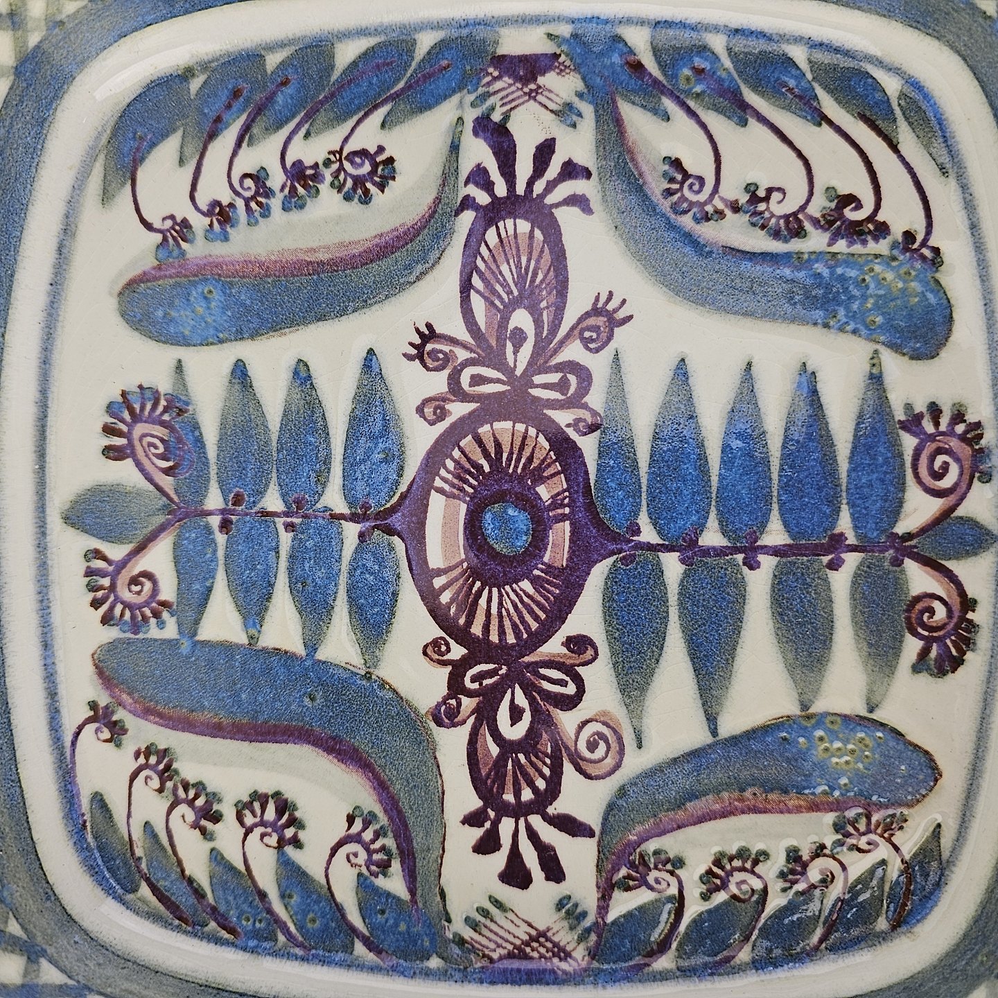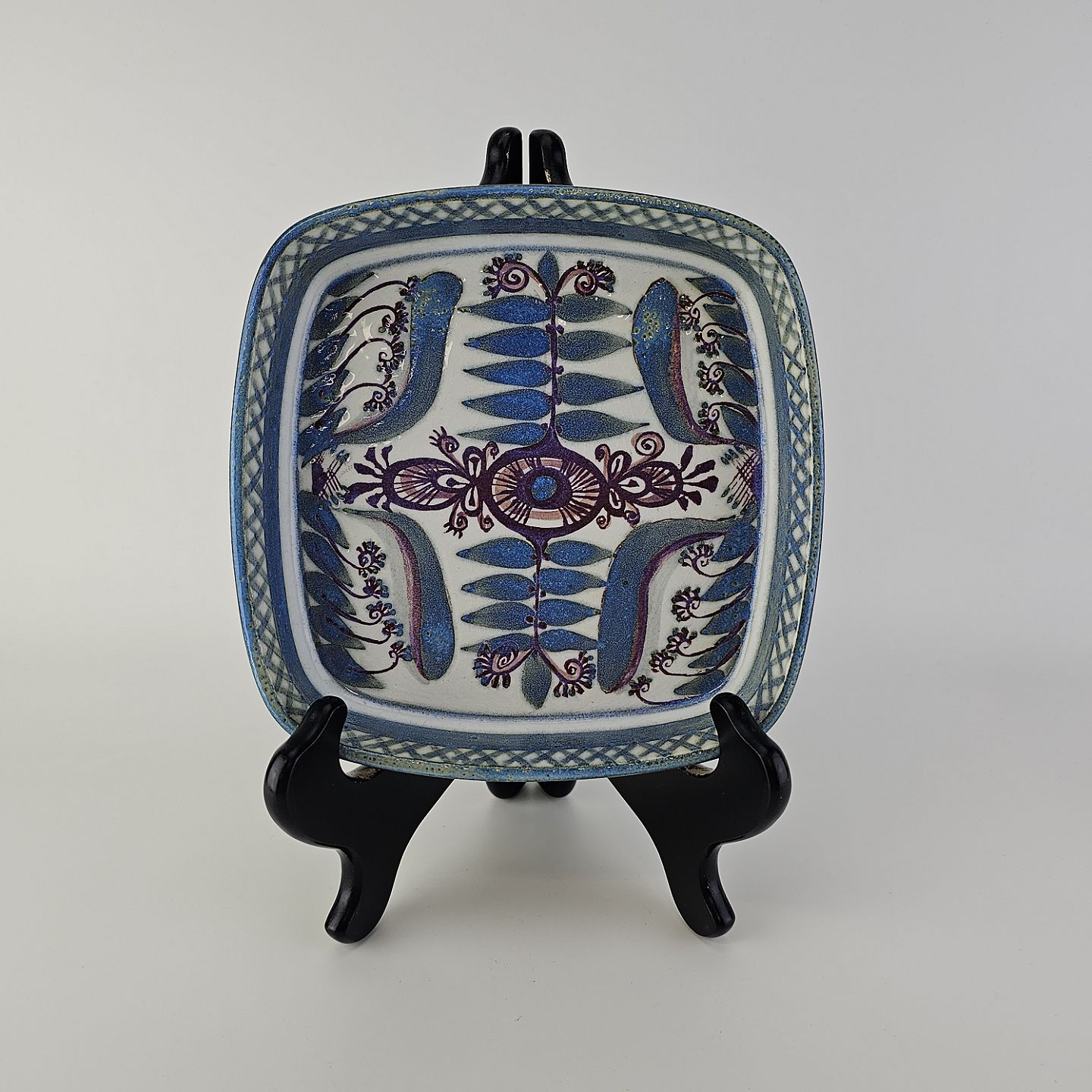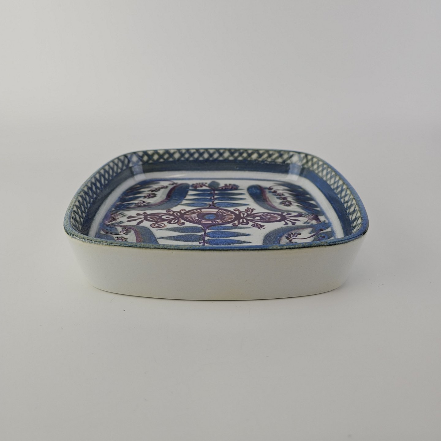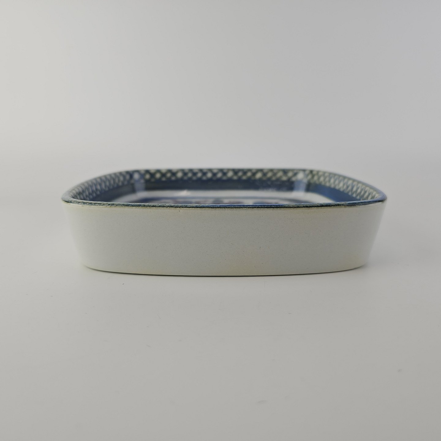 Firkantet fad fra serien Tenera i fajance med abstrakt dekoration i blå nuancer