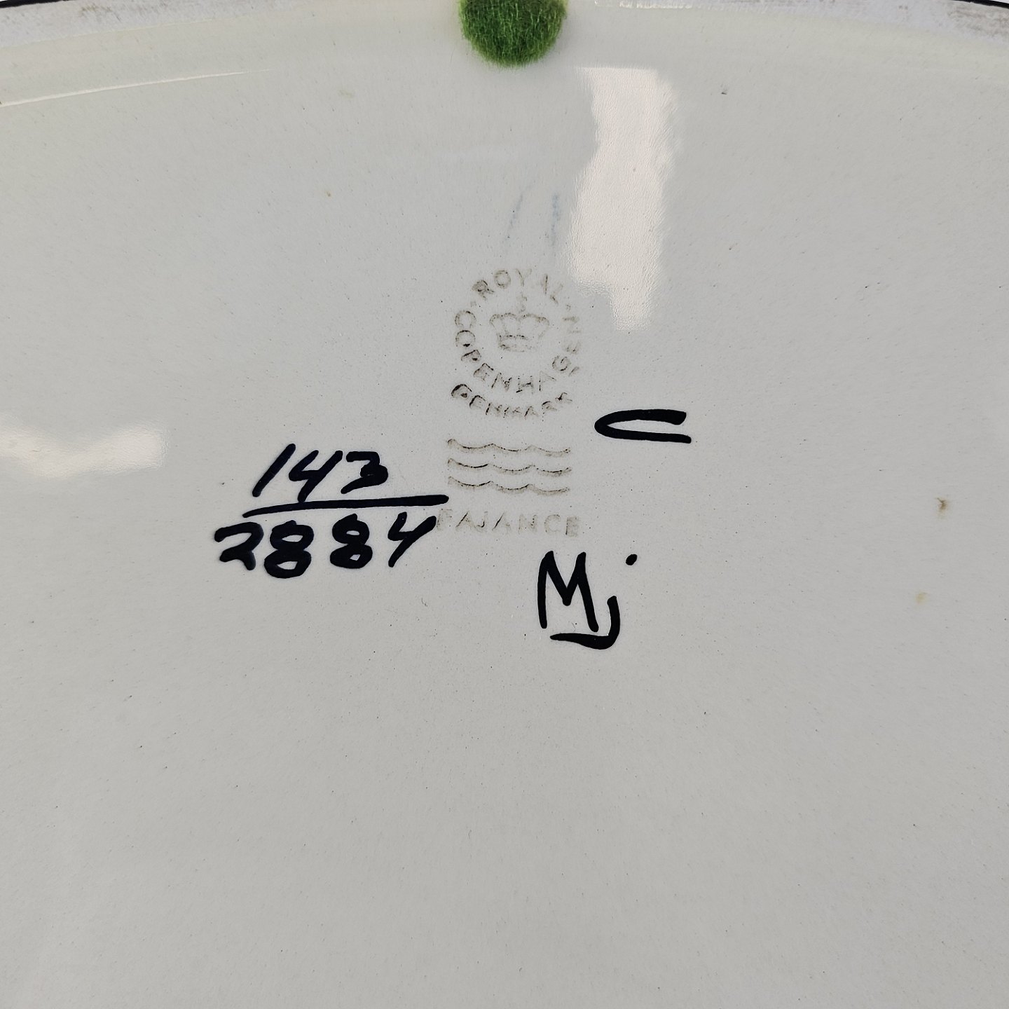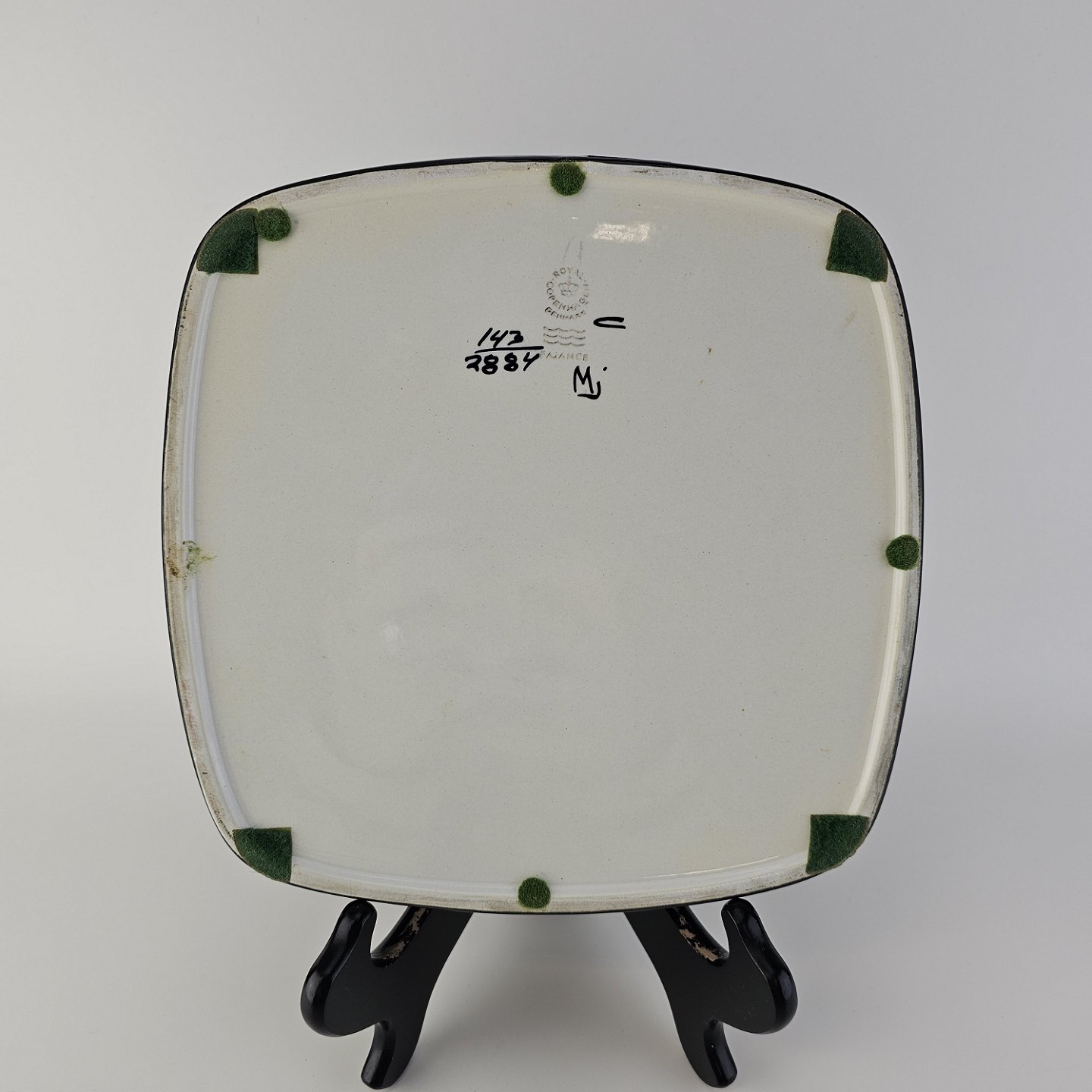 Firkantet fad fra serien Tenera i fajance med dekoration af en fugl i blå nuancer