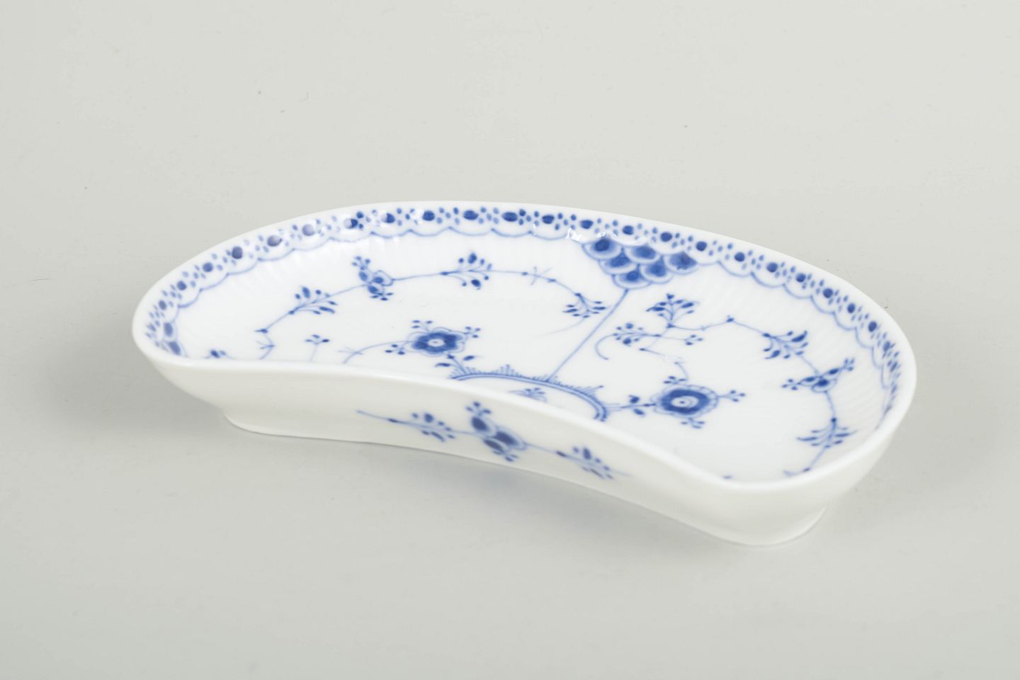 Royal Copenhagen Blue Fluted Half Lace, crescent-shaped dish.