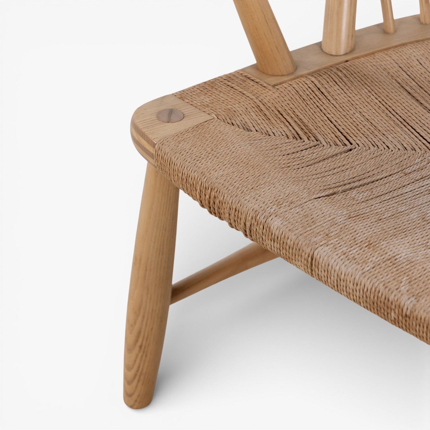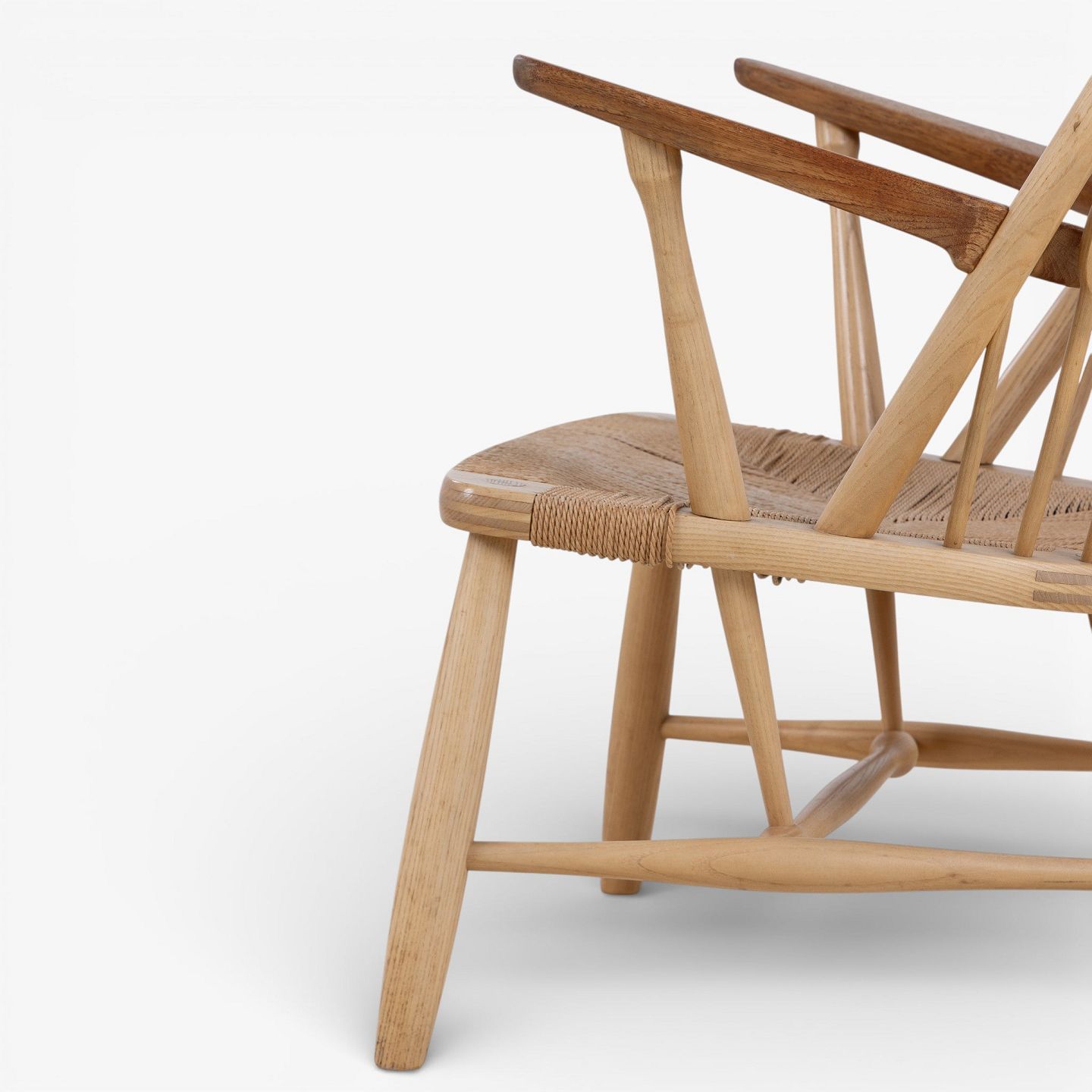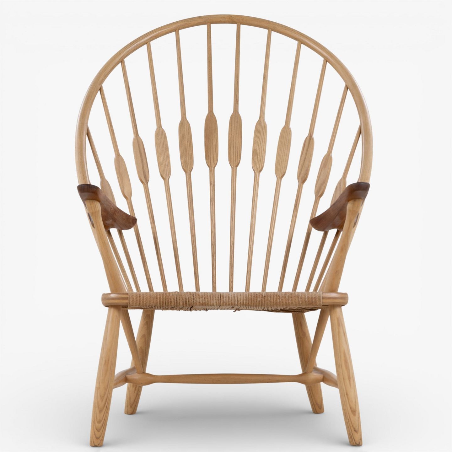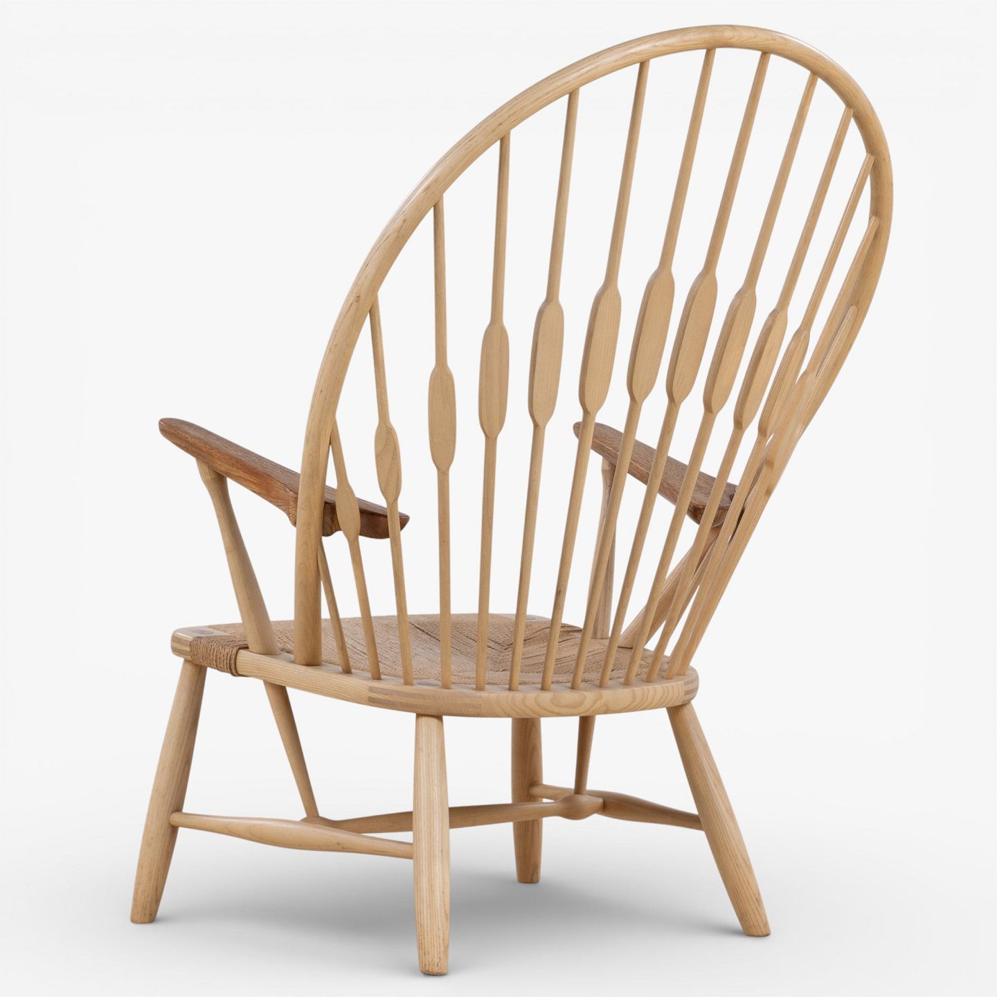 JH 550 - 'Peacock Chair' armchair in patinated ash with teak armrests and woven paper yarn seat. Branded by manufacturer.