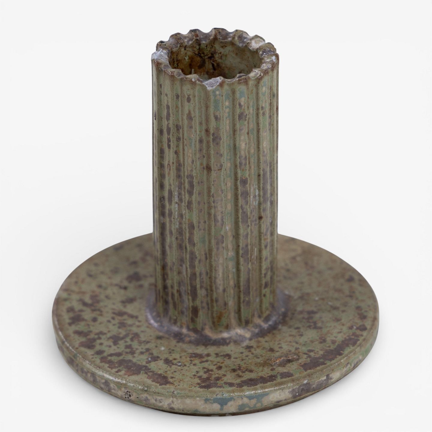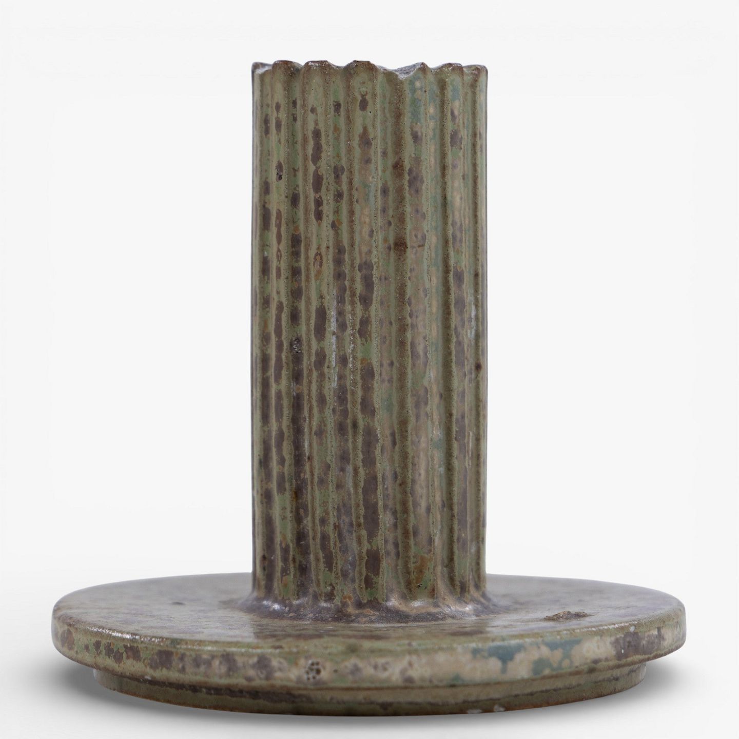 Model AB 133 - Candlestick in fluted stoneware with green/brown glaze. Signed.