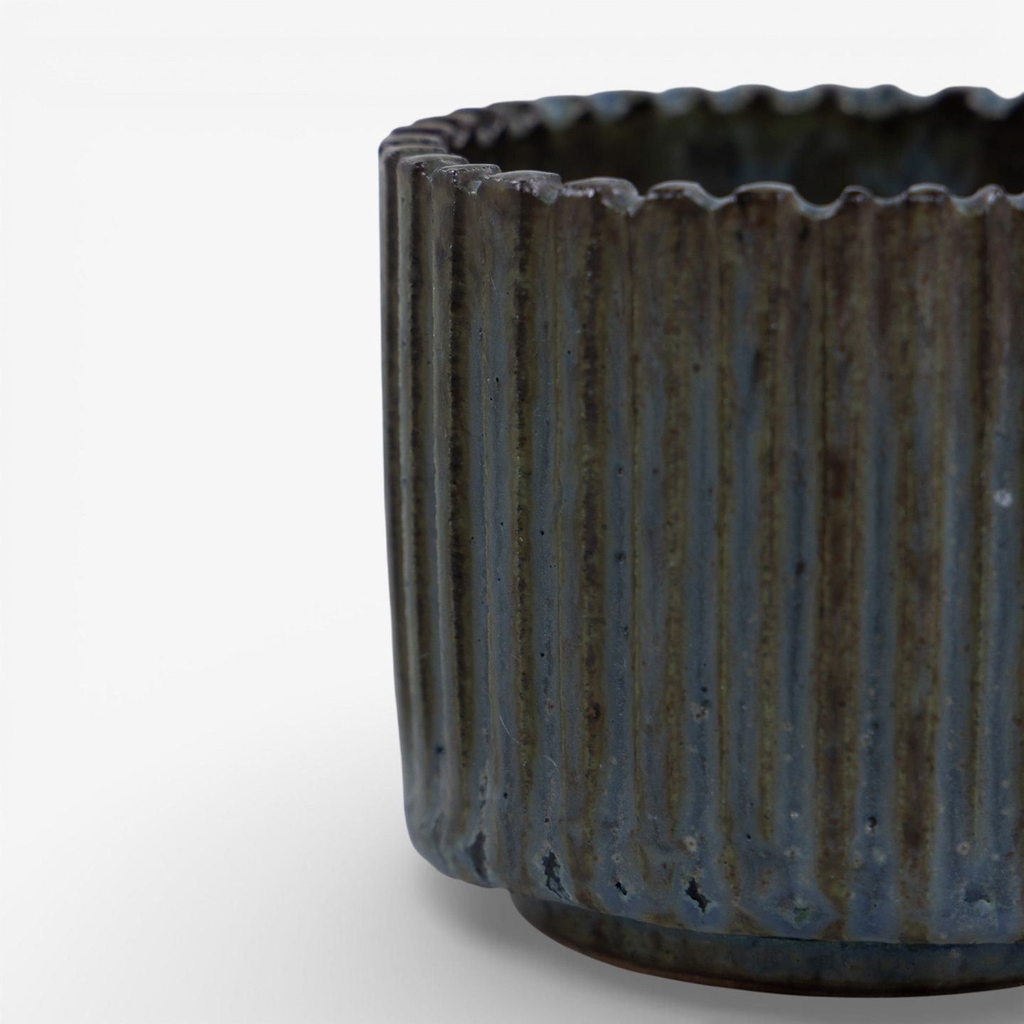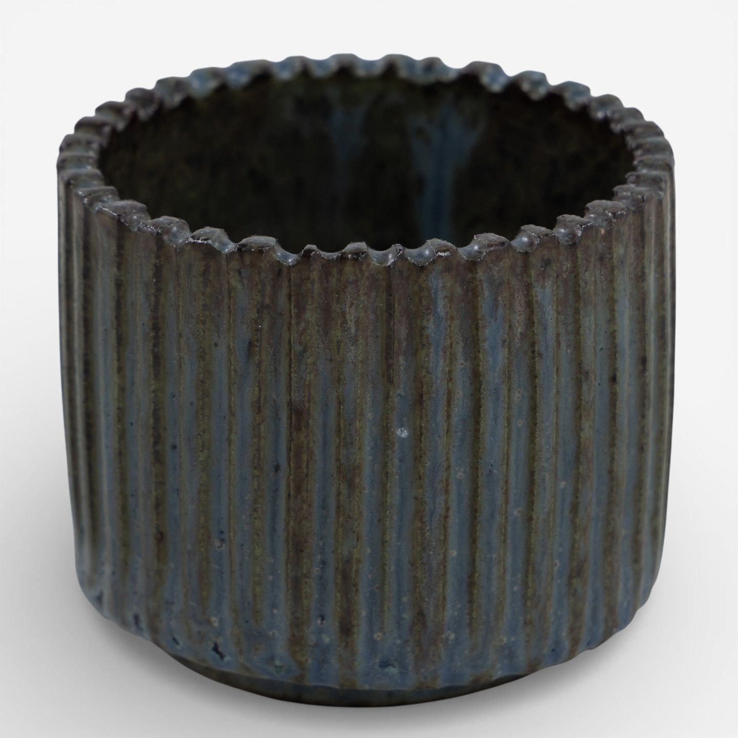 Jar in fluted stoneware with blue-green glaze. Signed.