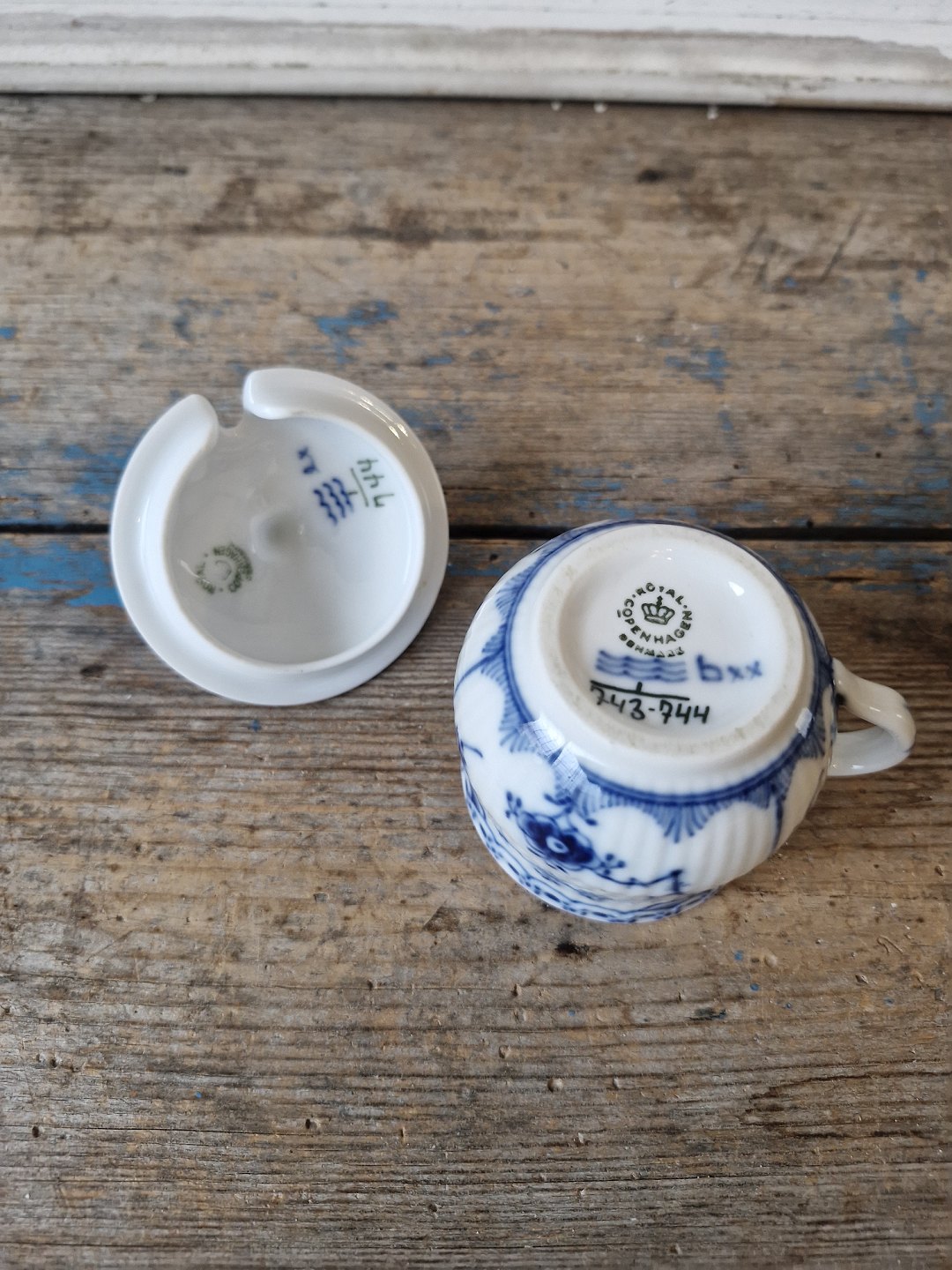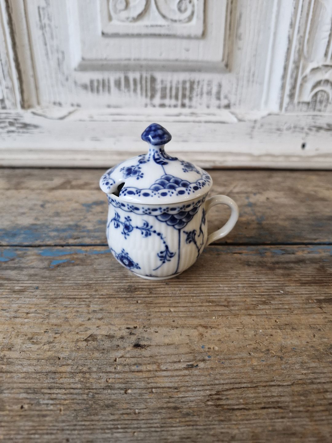 Royal Copenhagen Blue Fluted half lace mustard jar