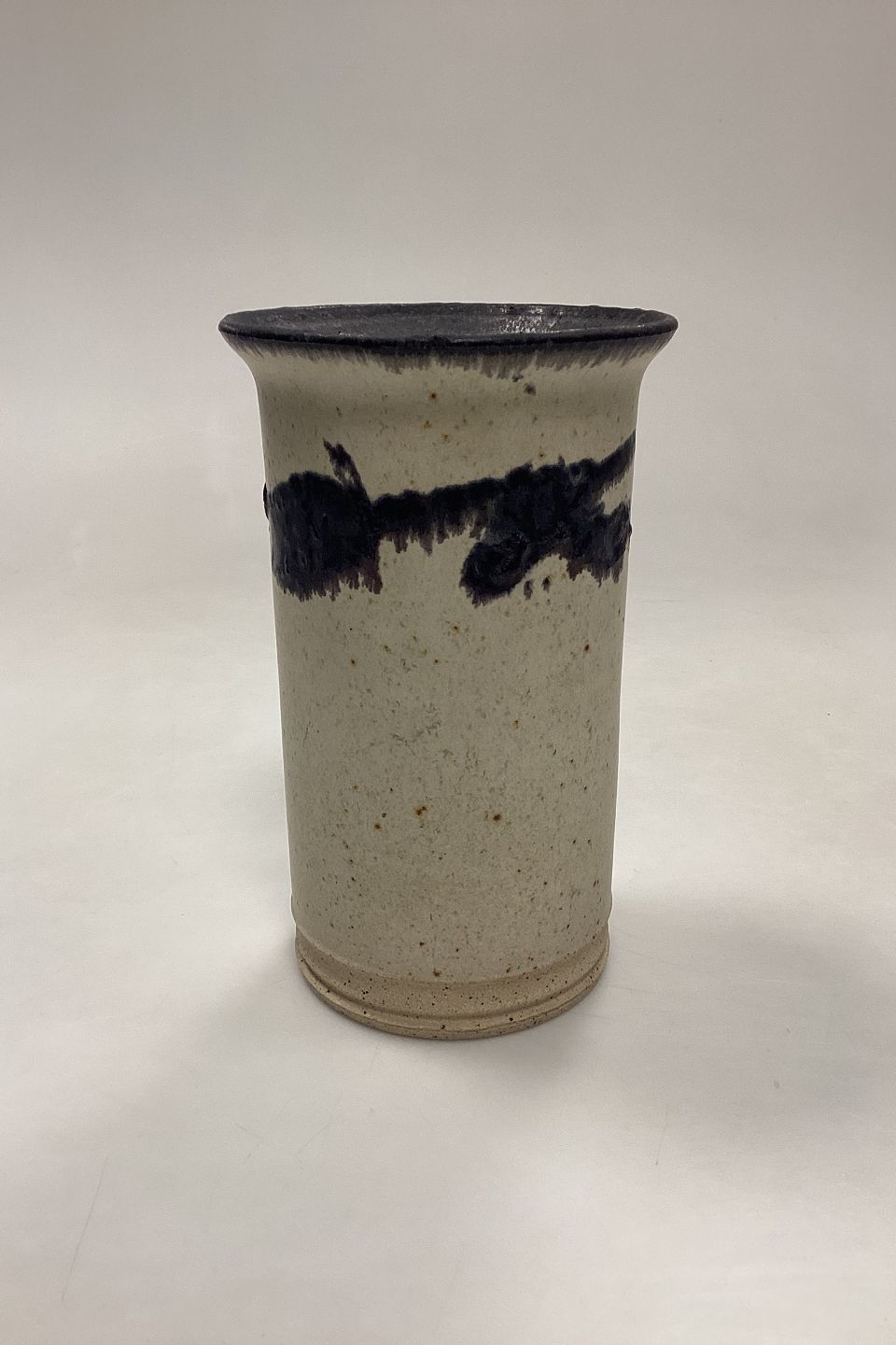 Bjørn Keramik/Ceramics Stoneware Vase. Pebbled off-white base with dark blue-purple graphic decoration.