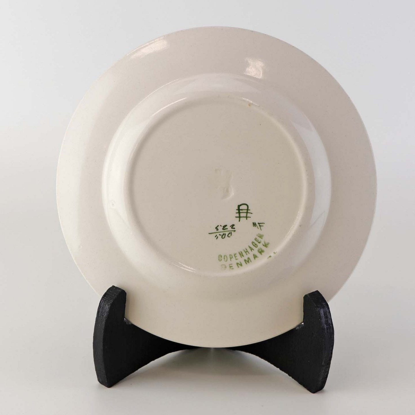 Flad kagetallerken i fajance fra stellet Blåregn. Stellet er fremstillet i perioden år 1903-1933. Nr. 522/500