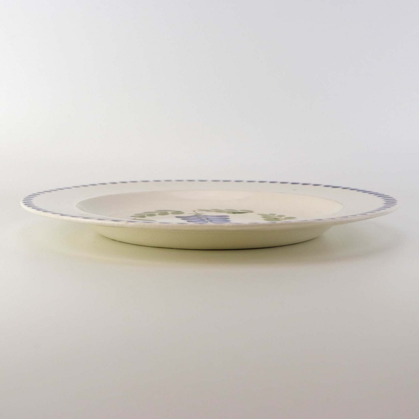 Flad middagstallerken i fajance fra stellet Blåregn. Stellet er fremstillet i perioden år 1903-1933. Nr. 522/504