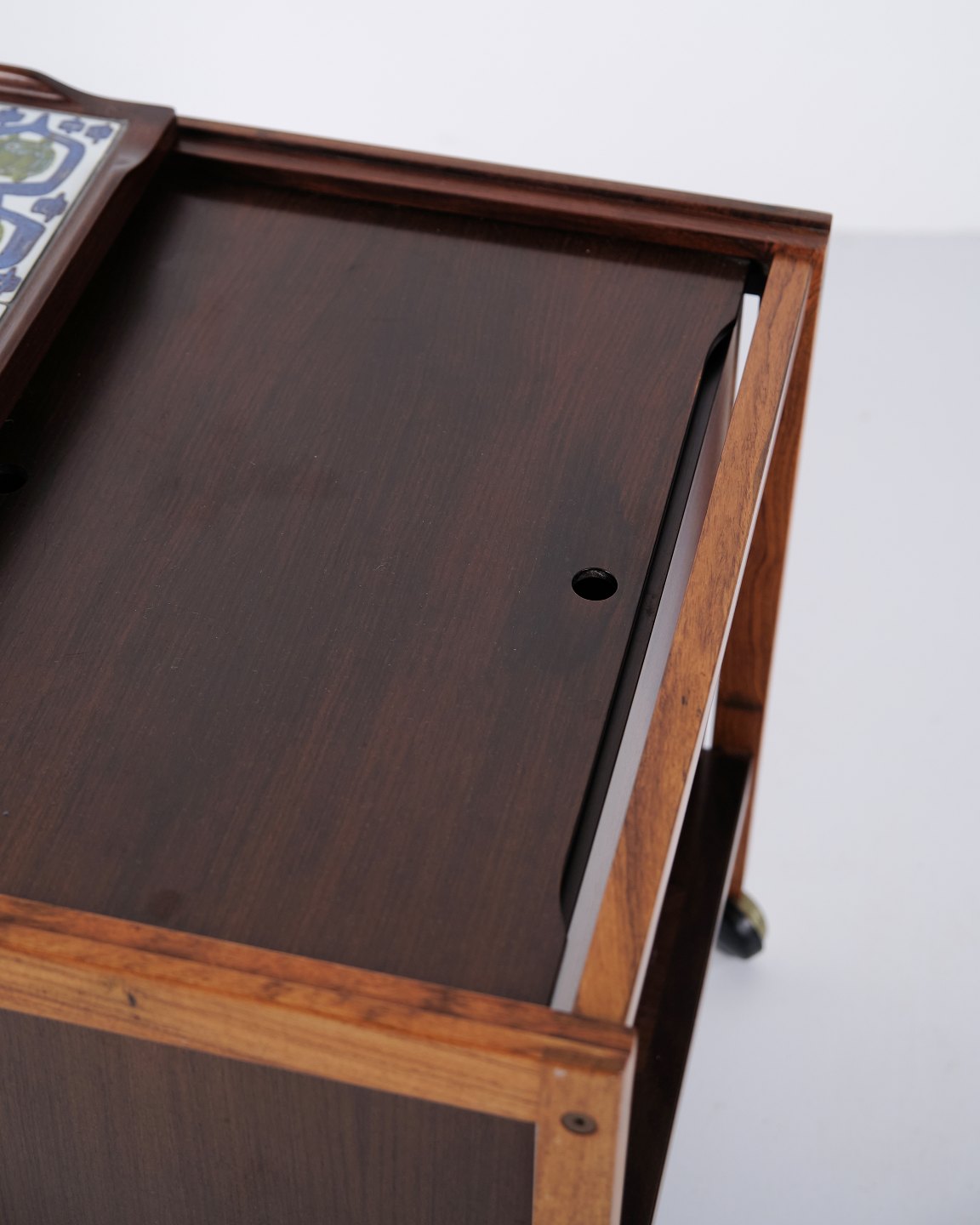 Bar cart in rosewood designed by Severin Hansen with tiles from Royal Copenhagen. Classic Danish design from the 1960s with an elegant appearance.