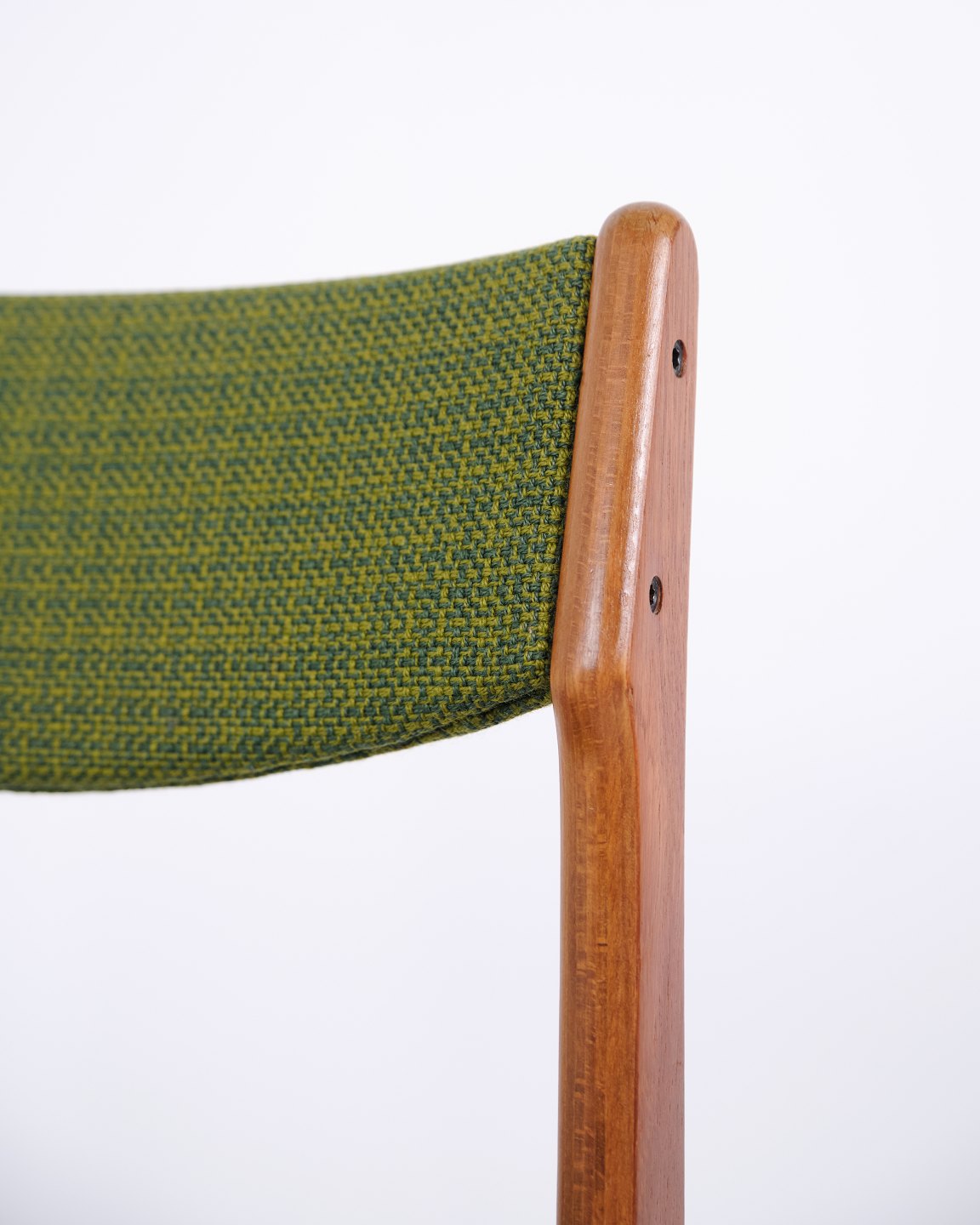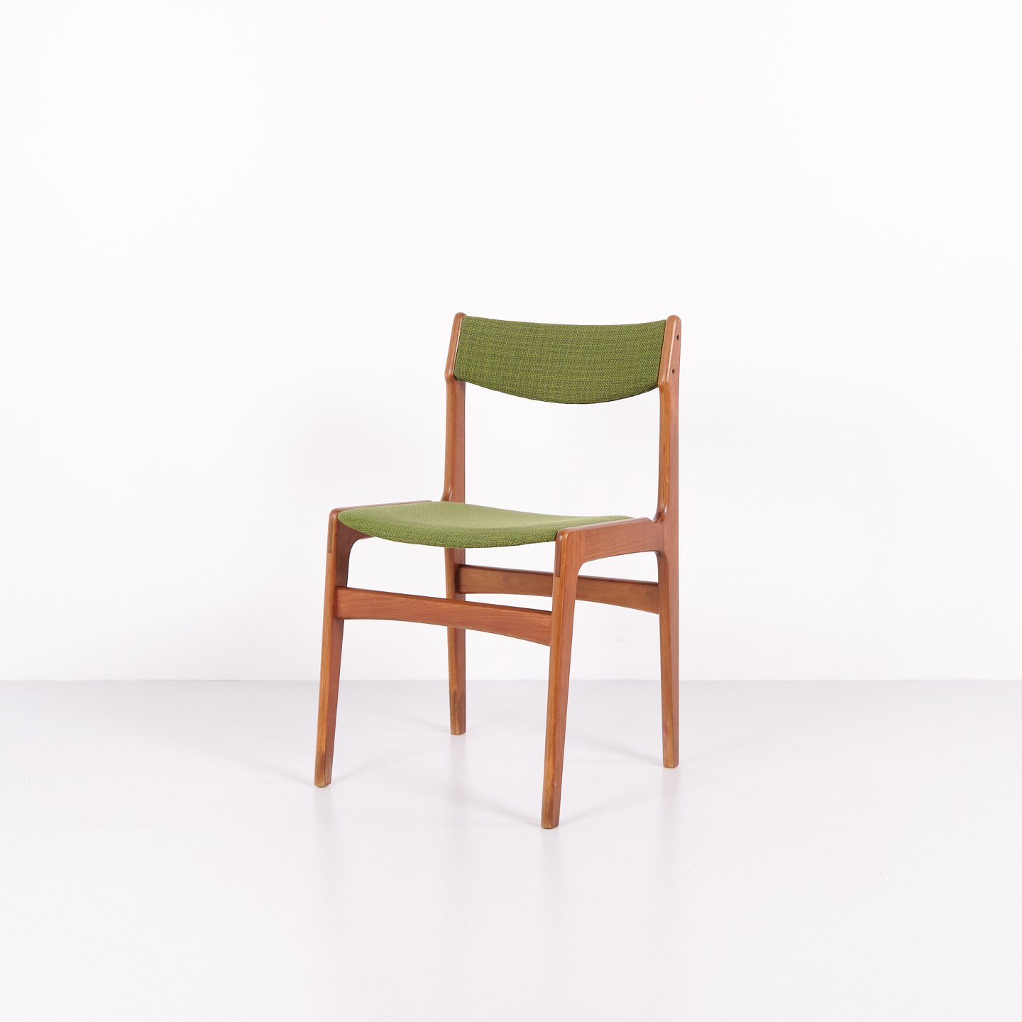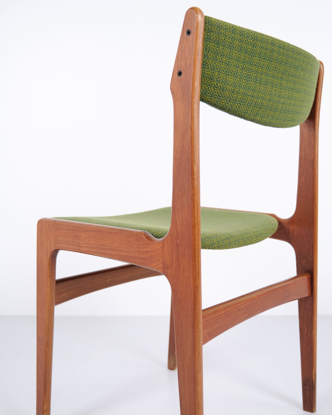Erik Buch dining chair from the 1960s in teak and green fabric. Classic Danish design.
