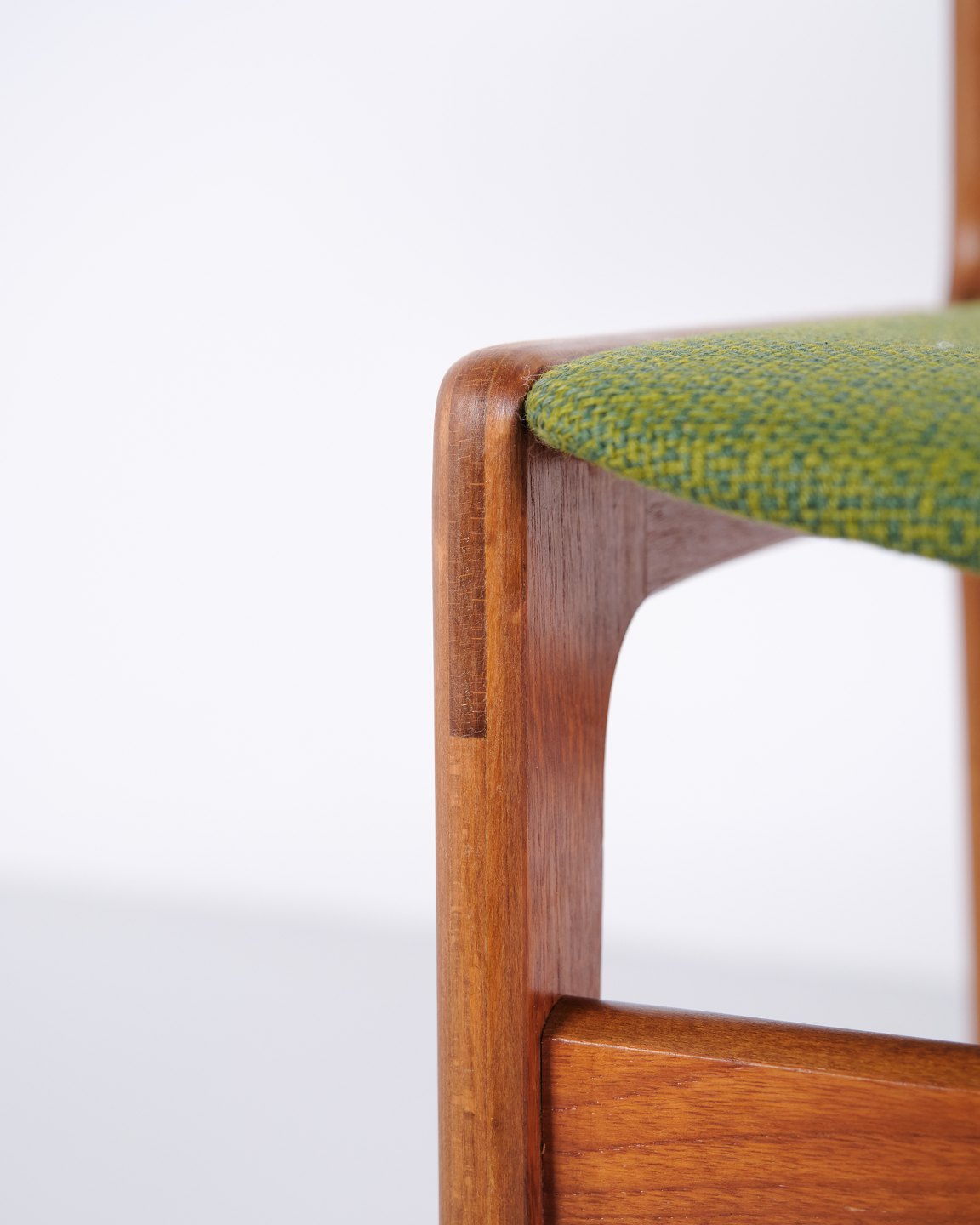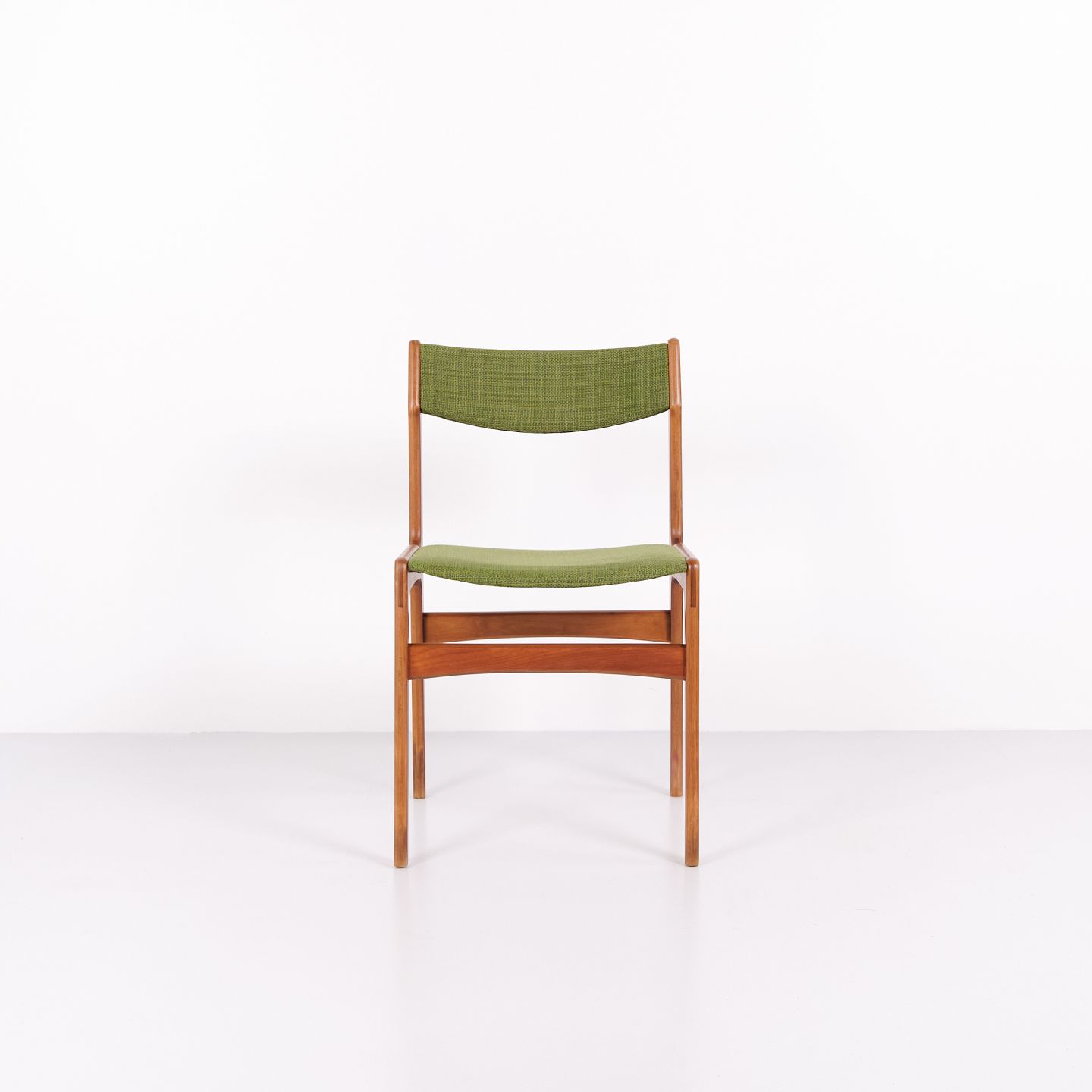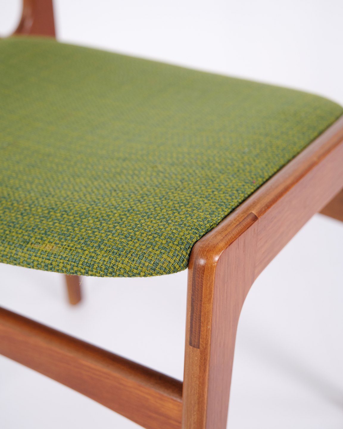Erik Buch dining chair from the 1960s in teak and green fabric. Classic Danish design.