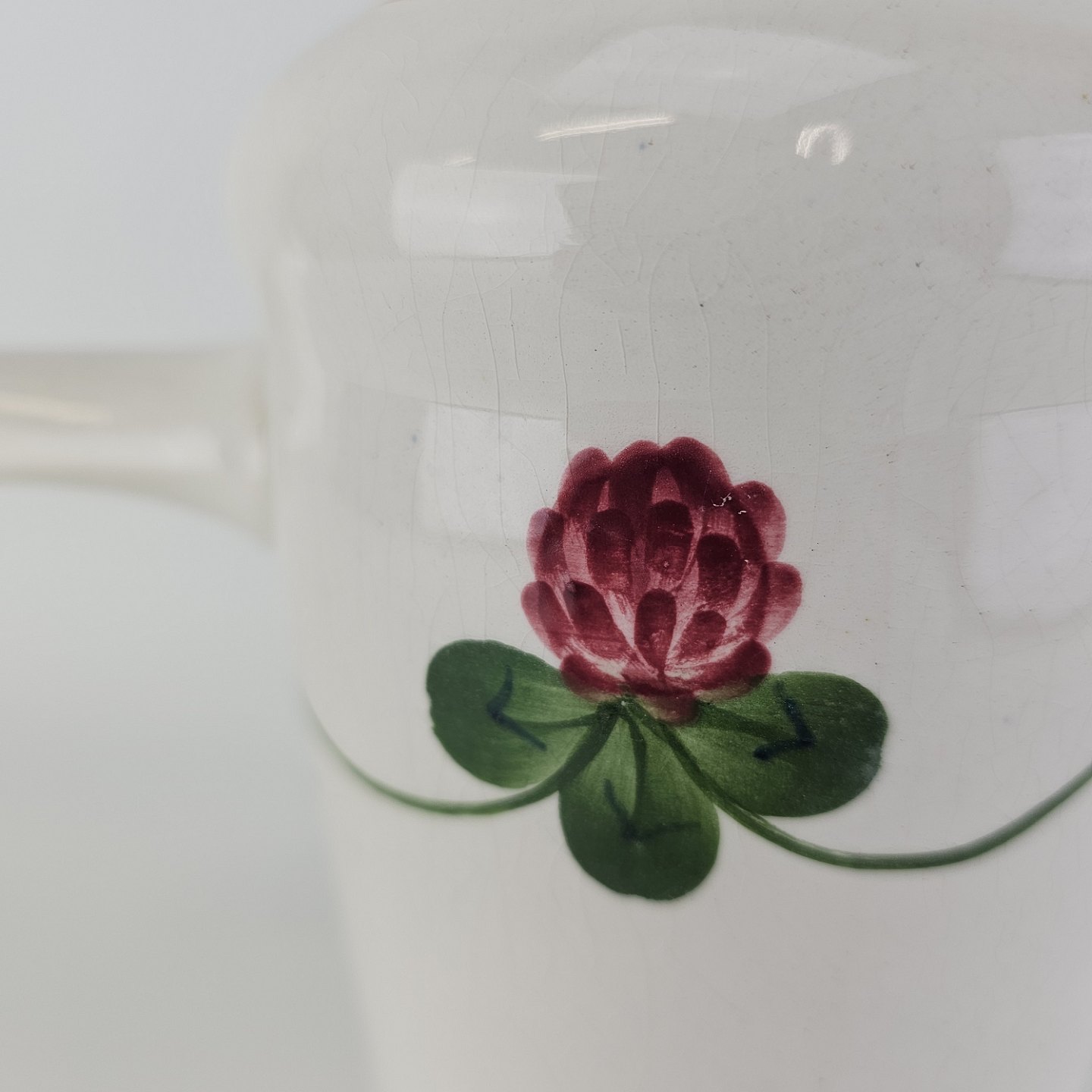 Kløver er fajancestel med motiv af rødkløver på lys baggrund.
