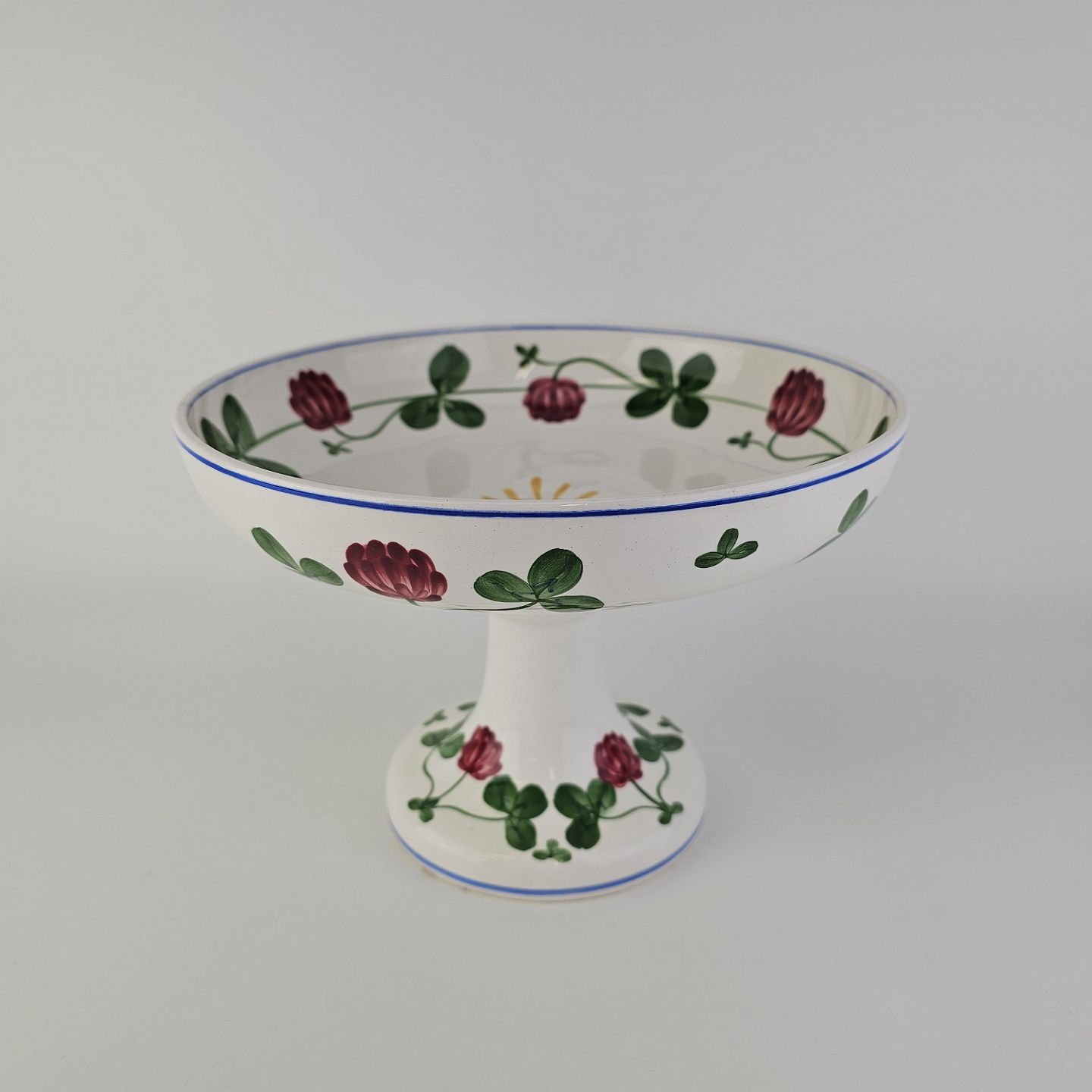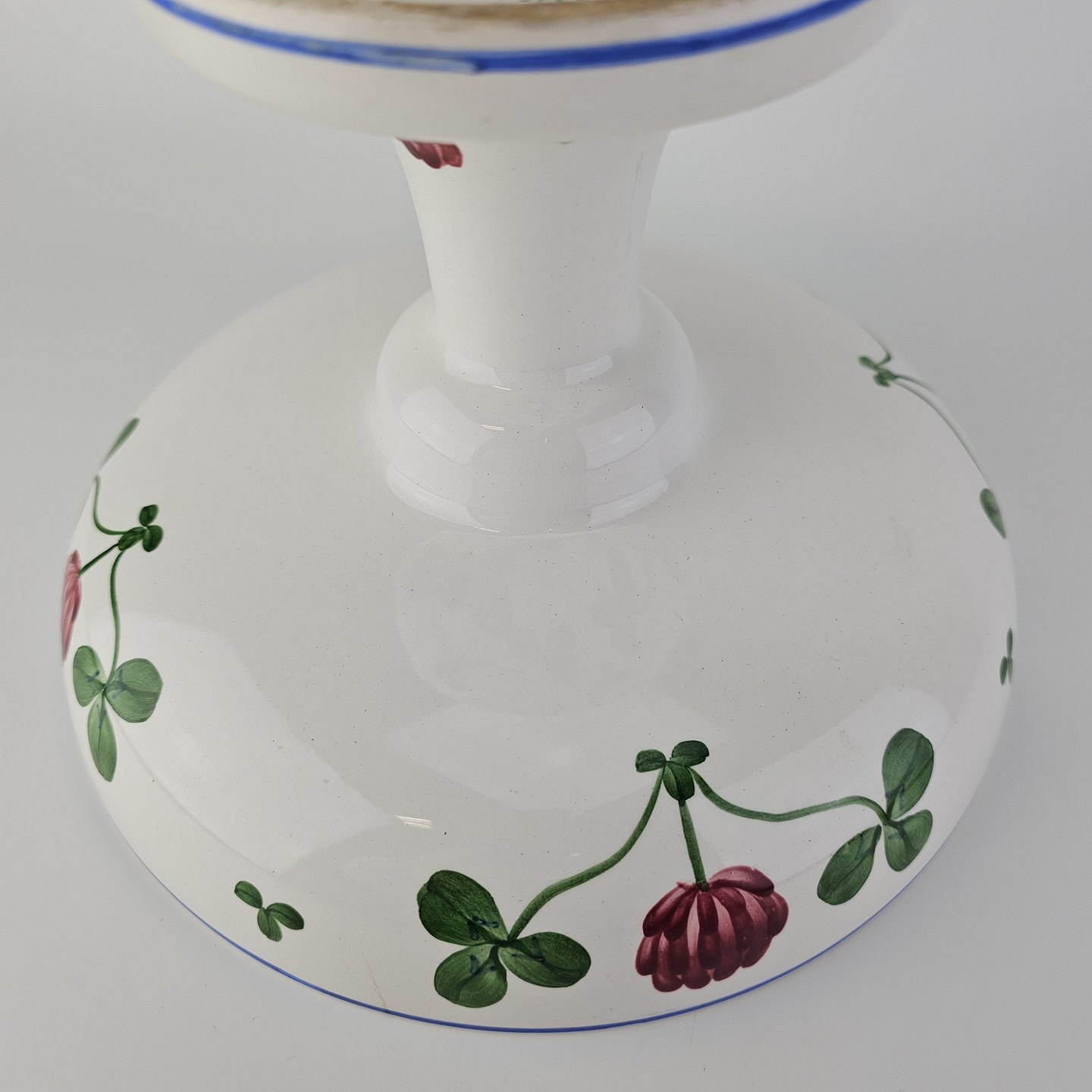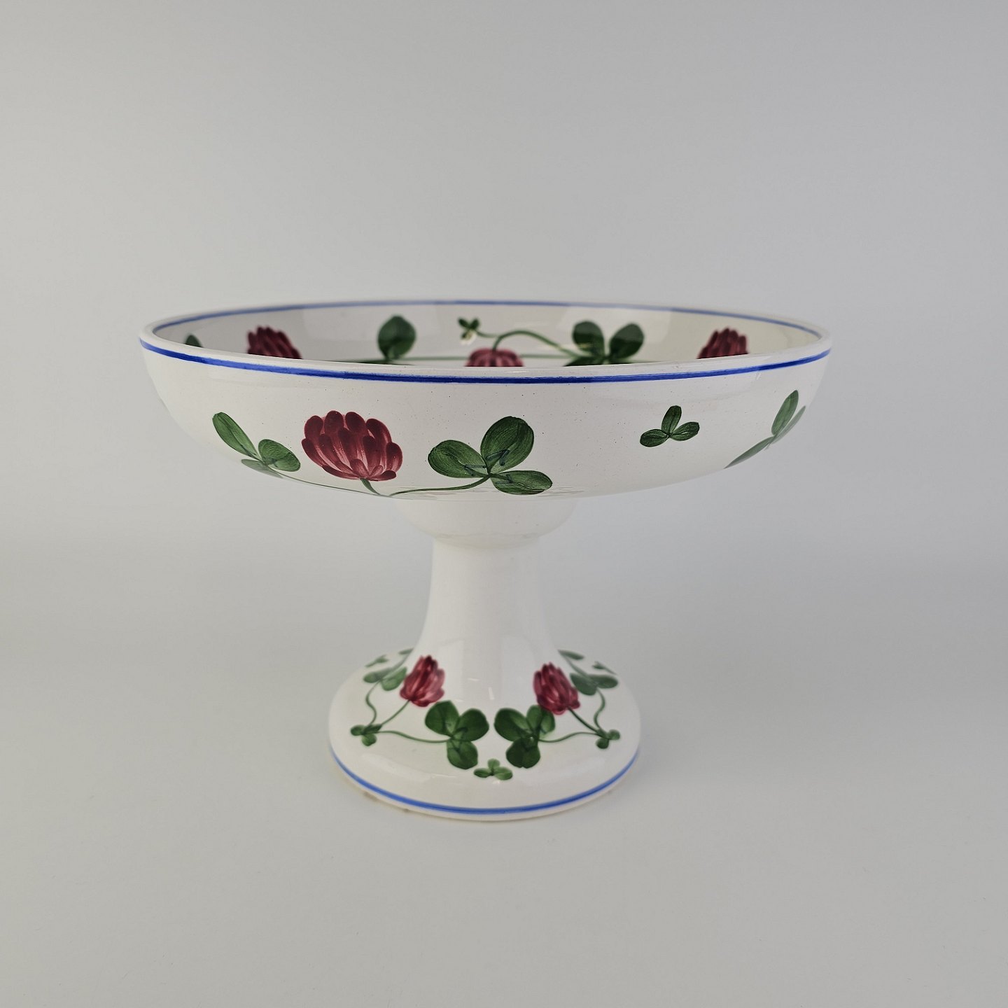 Kløver er fajancestel med motiv af rødkløver på lys baggrund.