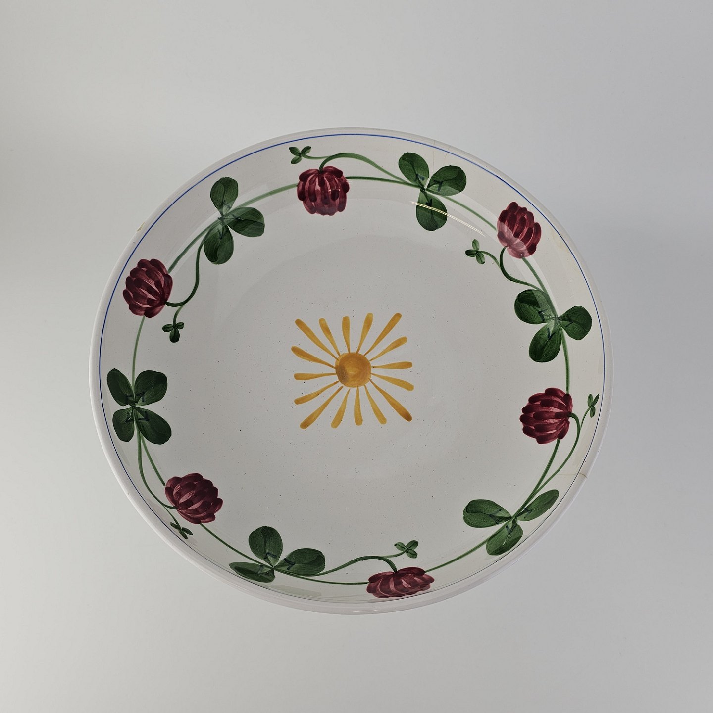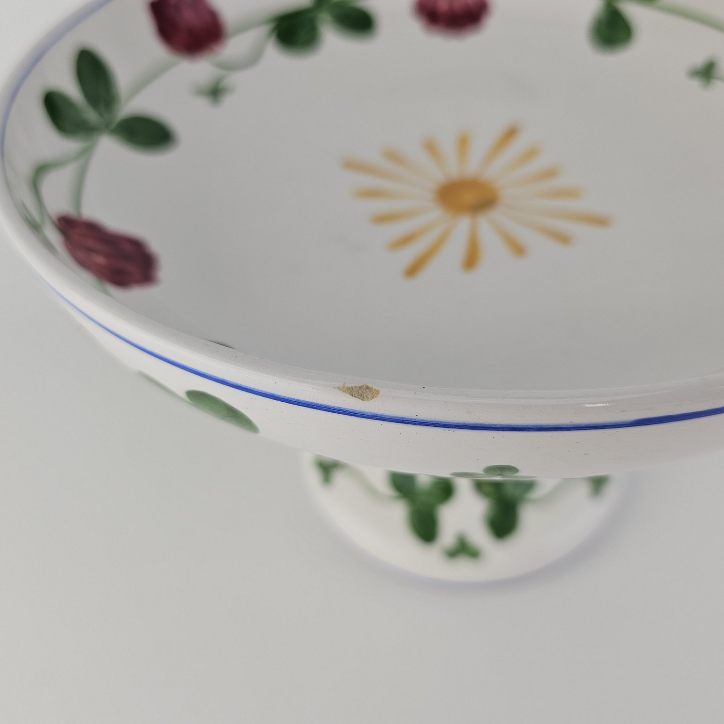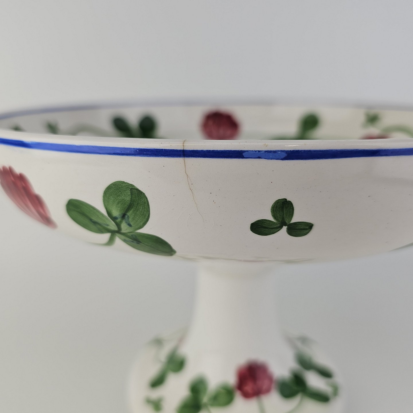Kløver er fajancestel med motiv af rødkløver på lys baggrund.