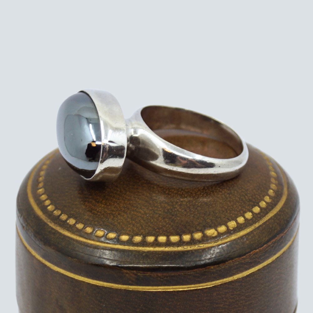 Nanna Ditzel for Georg Jensen; A ring made of sterling silver set with a hematite #123B. Ring size 51.