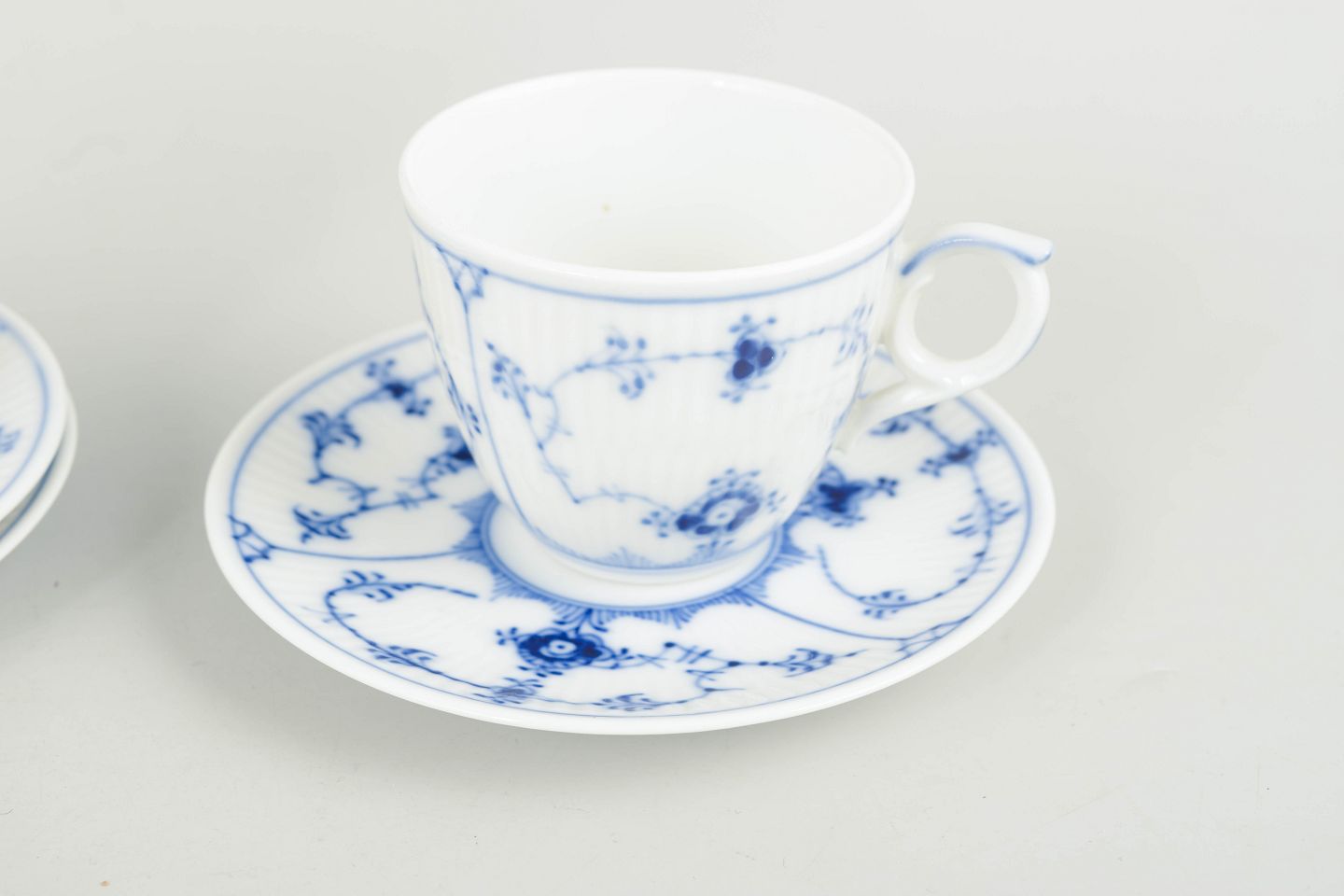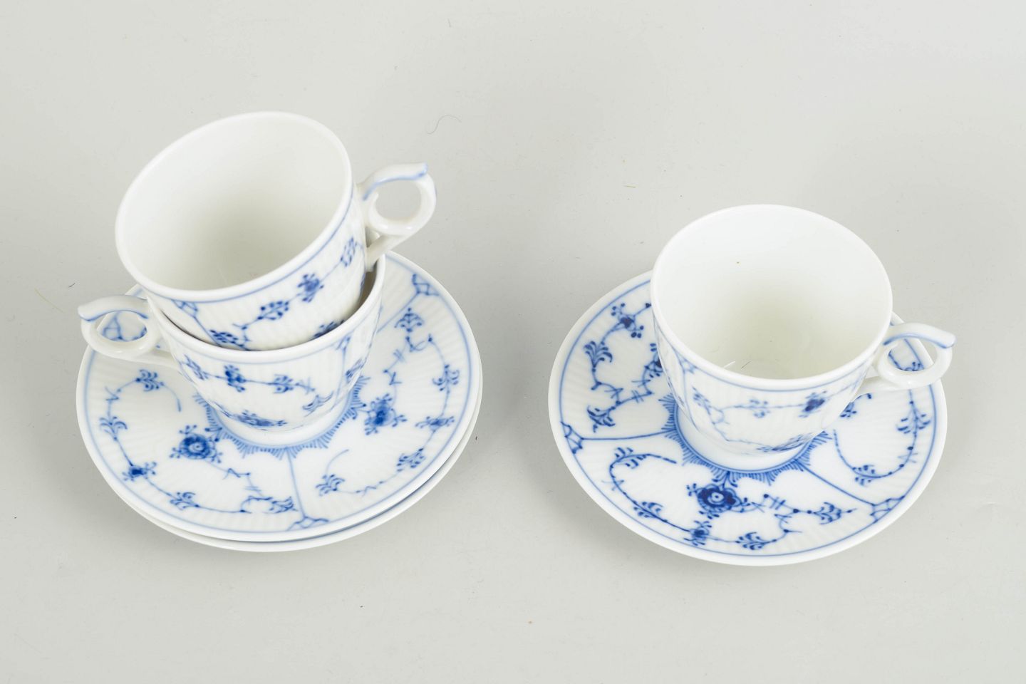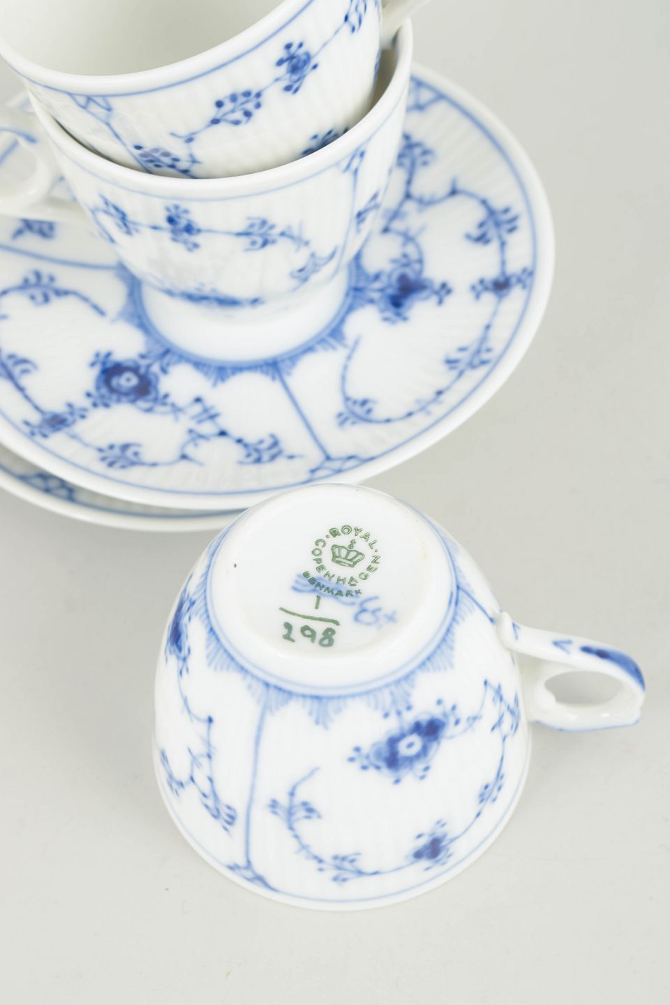 Royal Copenhagen Blue Fluted Plain, set of three demitasse cups with matching saucers.