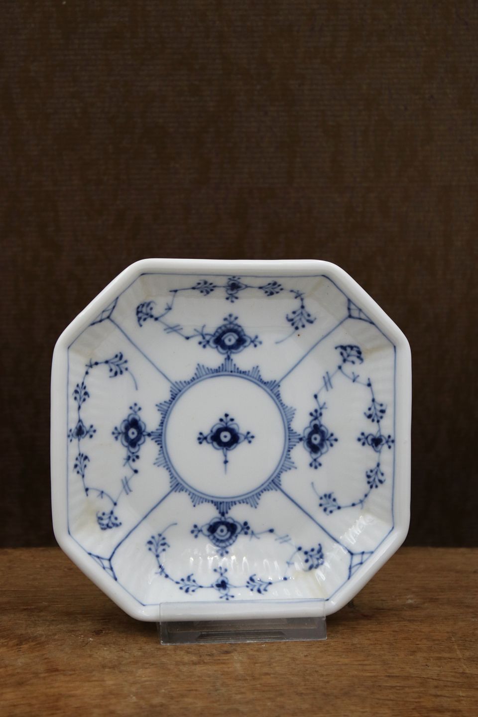 8-cornered saucer in Blue Fluted Plain from Royal Copenhagen.