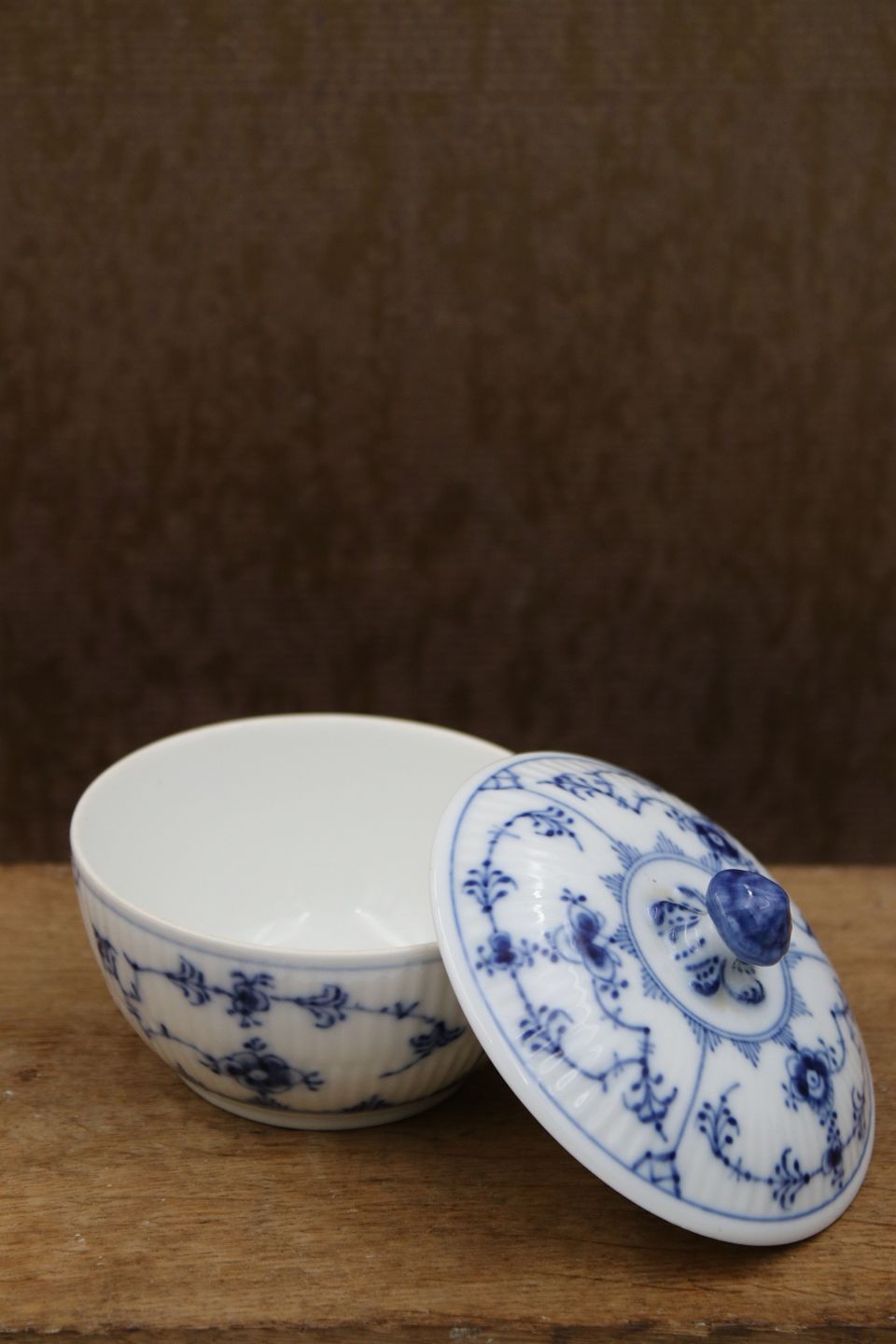 Royal Copenhagen Blue Fluted Plain sugar bowl with lid.