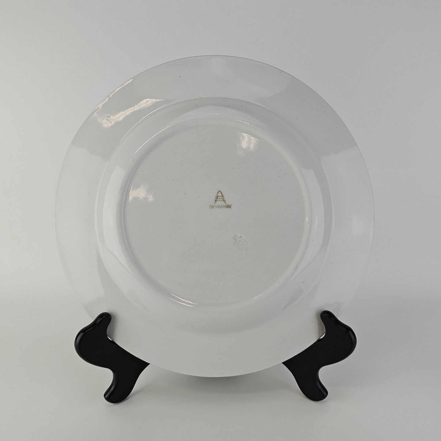 Flad middagstallerken i fajance fra stellet Geranium II fremstillet i perioden 1927-1940.