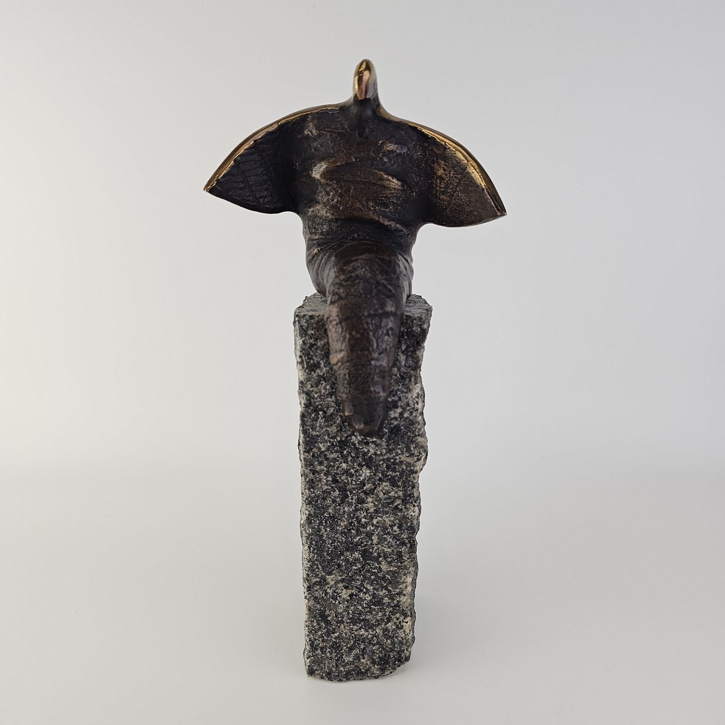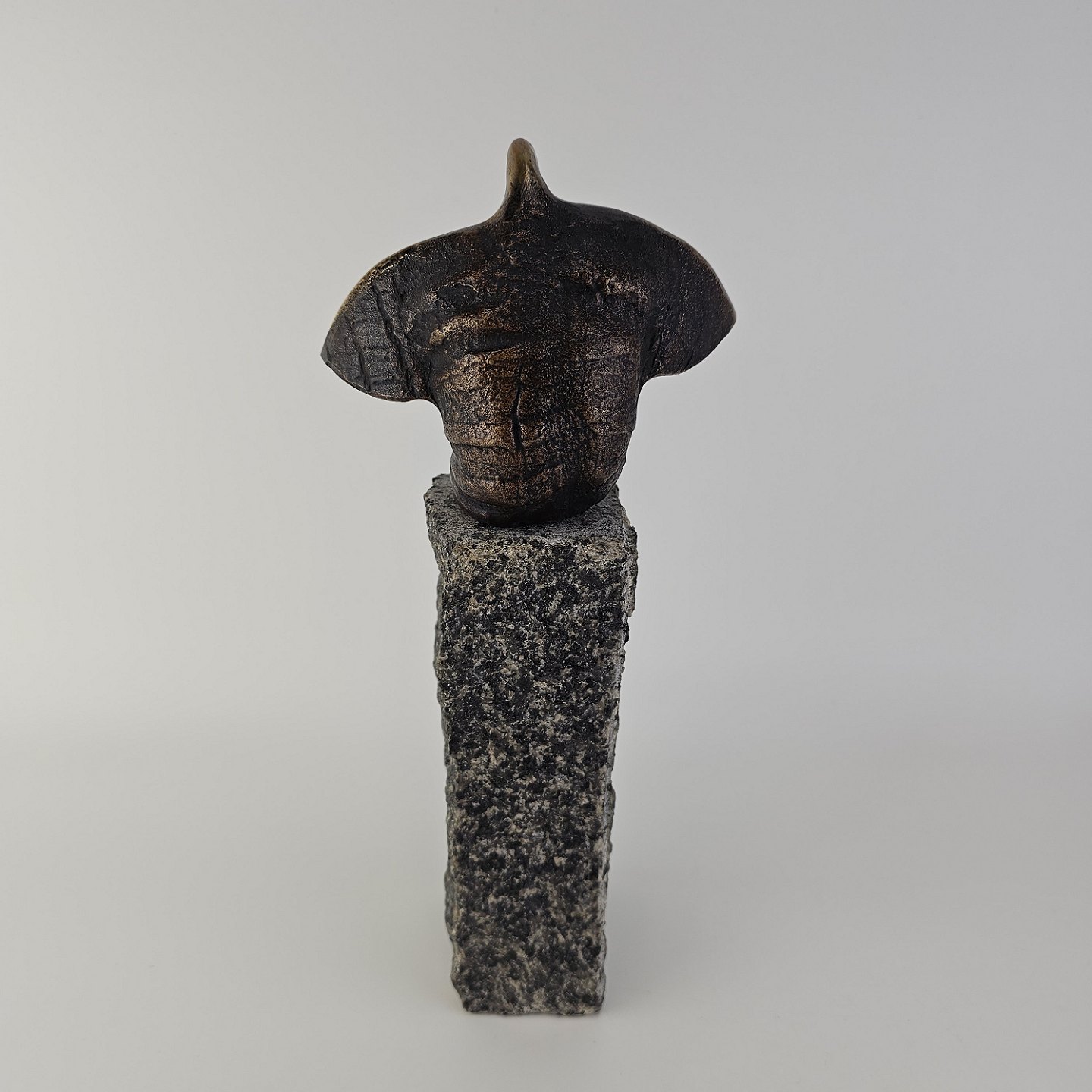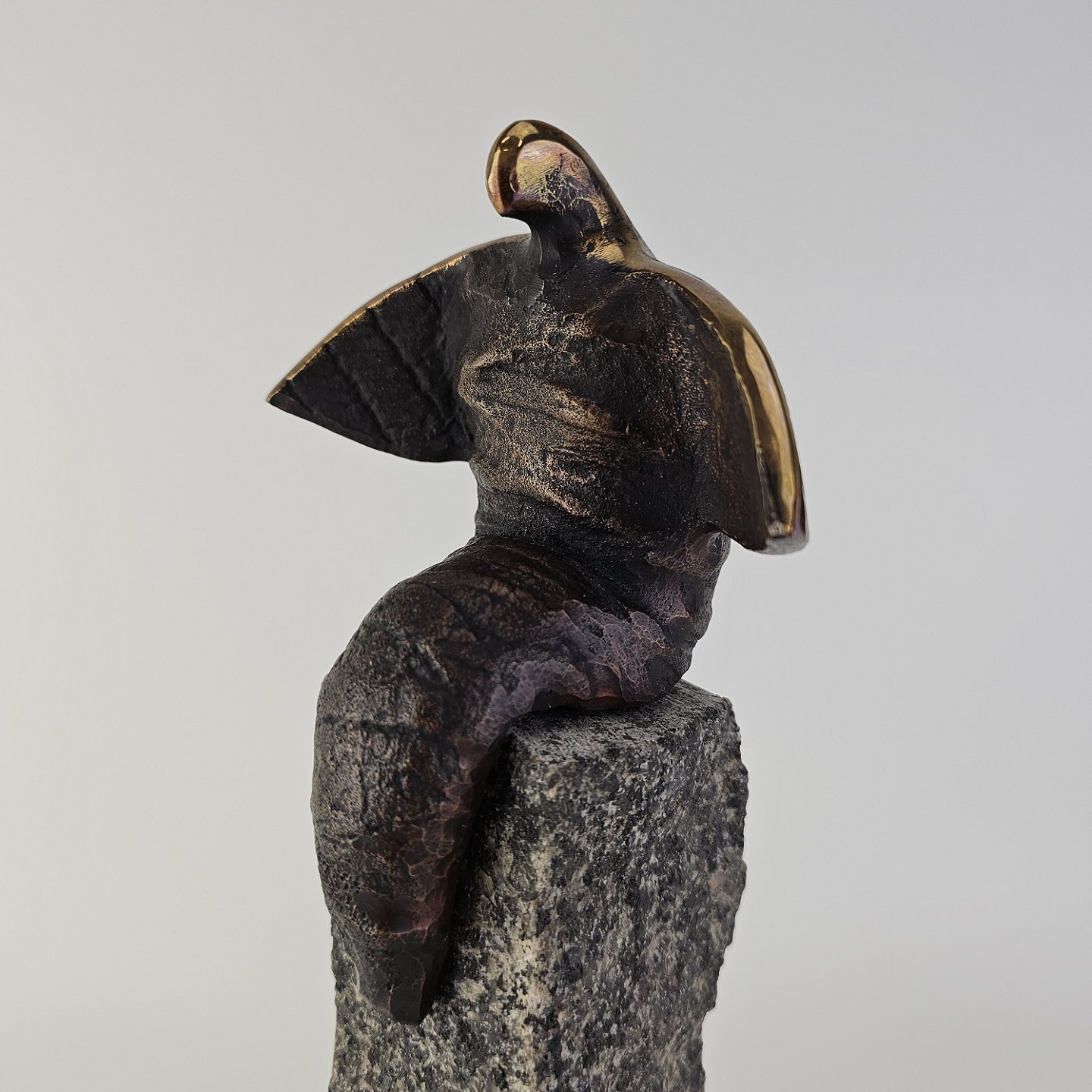 Figur af bronze på en granitsten