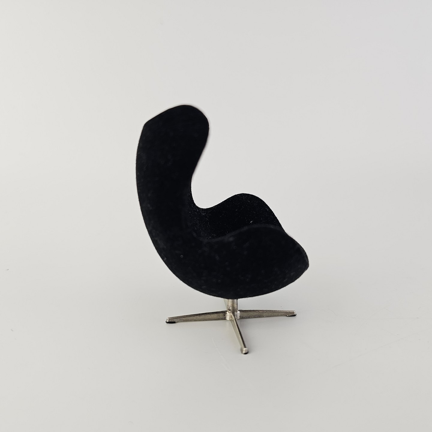 Miniature model af lænestolen Ægget polstret i sort stof