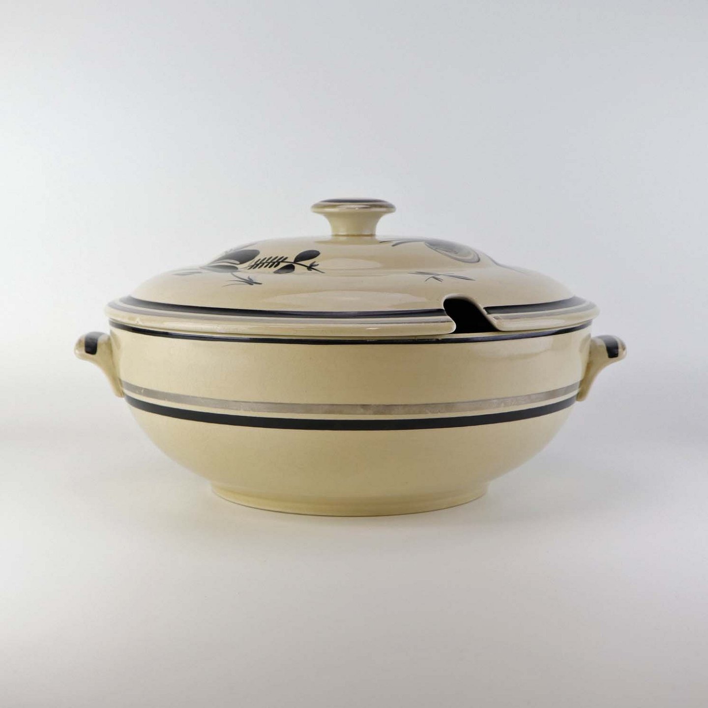 Text available in Danish: Suppeterrin i fajance fra stellet Dragsholm fremstillet i perioden 1934-1965. Nr 256