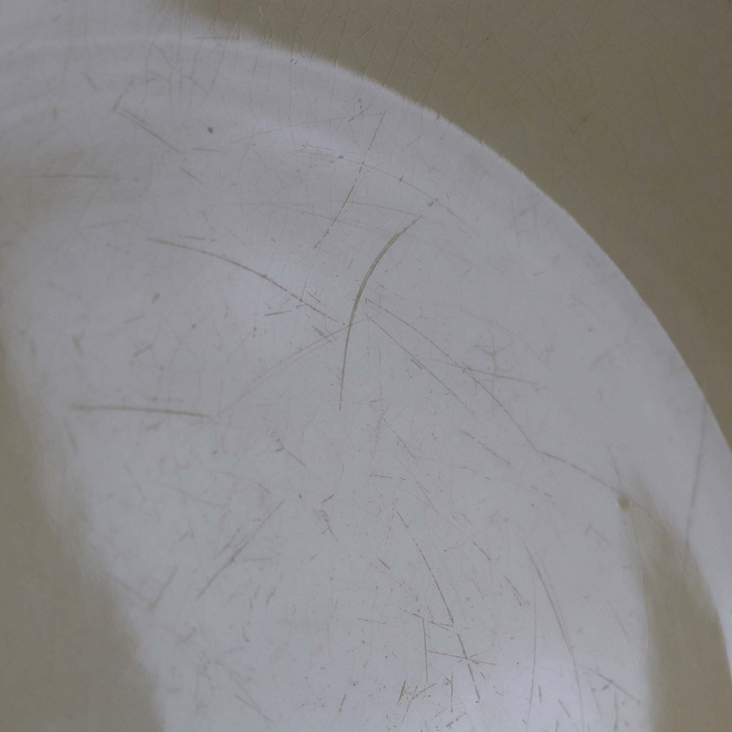Fremstår med krakkeleringer i glasuren, lettere ridser i bunden af terrinen, brugsspor på dekorationen samt ujævnheder i glasuren.