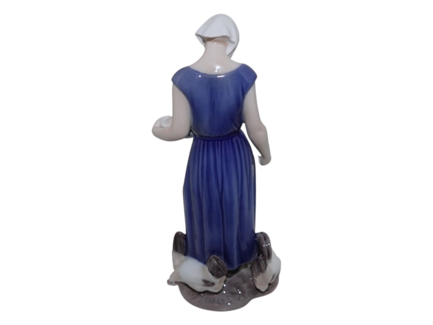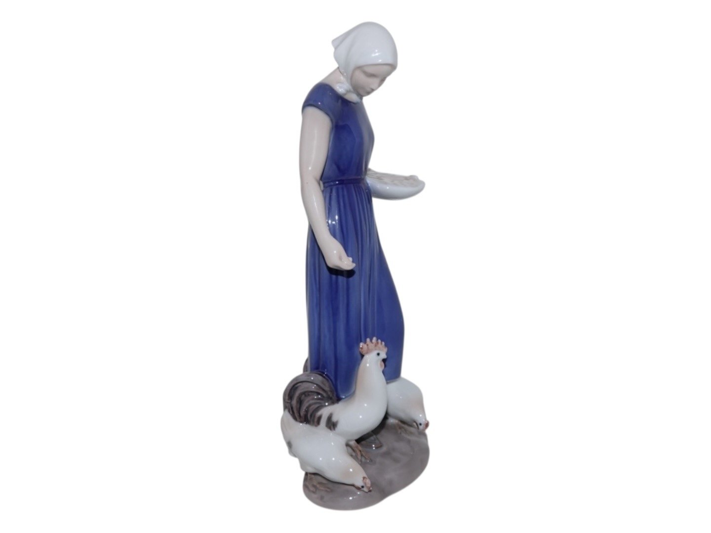 Bing & Grondahl Copenhagen Figurine, farm girl feeding three hen.