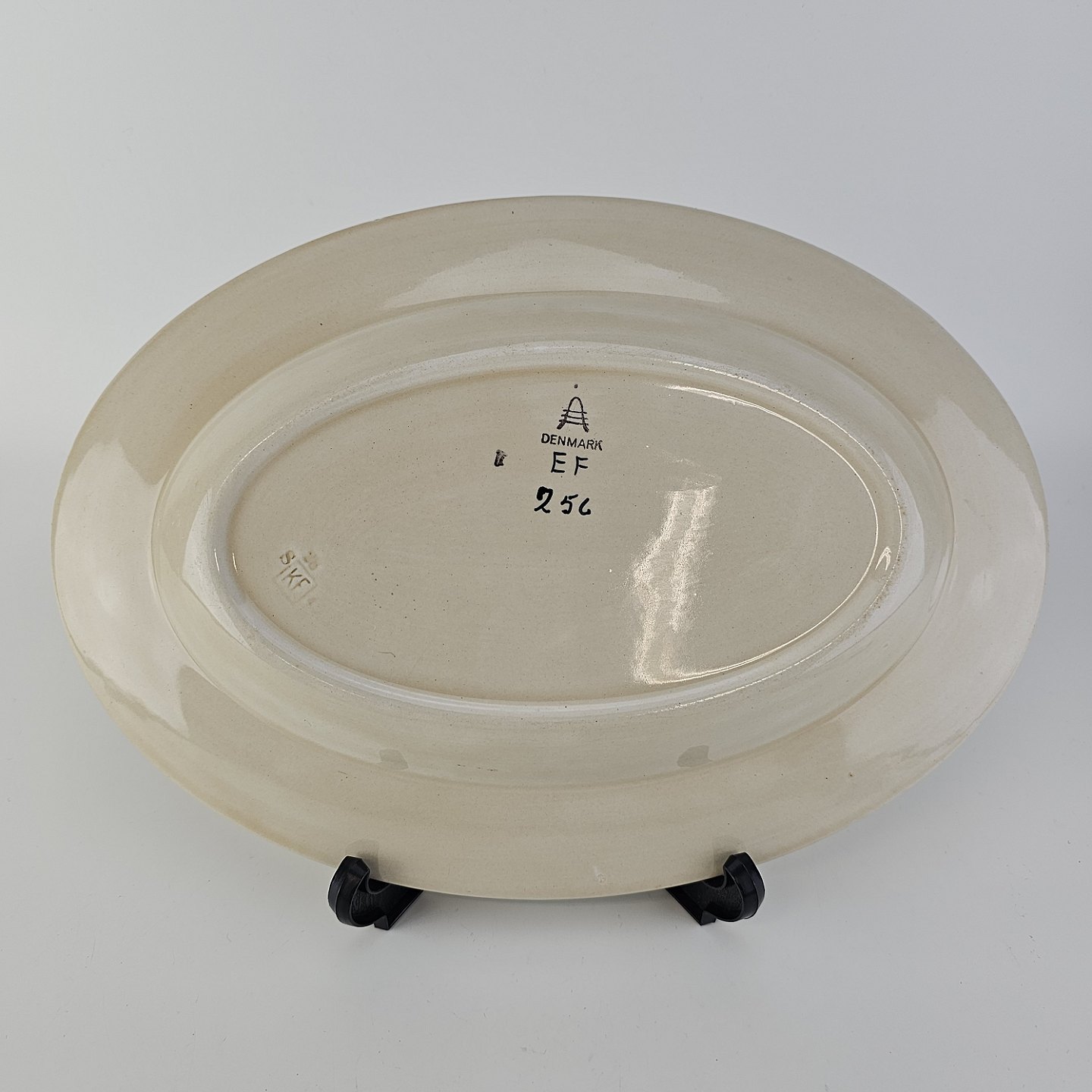 Ovalt fad i fajance fra stellet Dragsholm fremstillet i perioden 1934-1965.