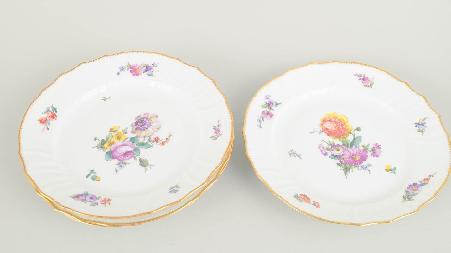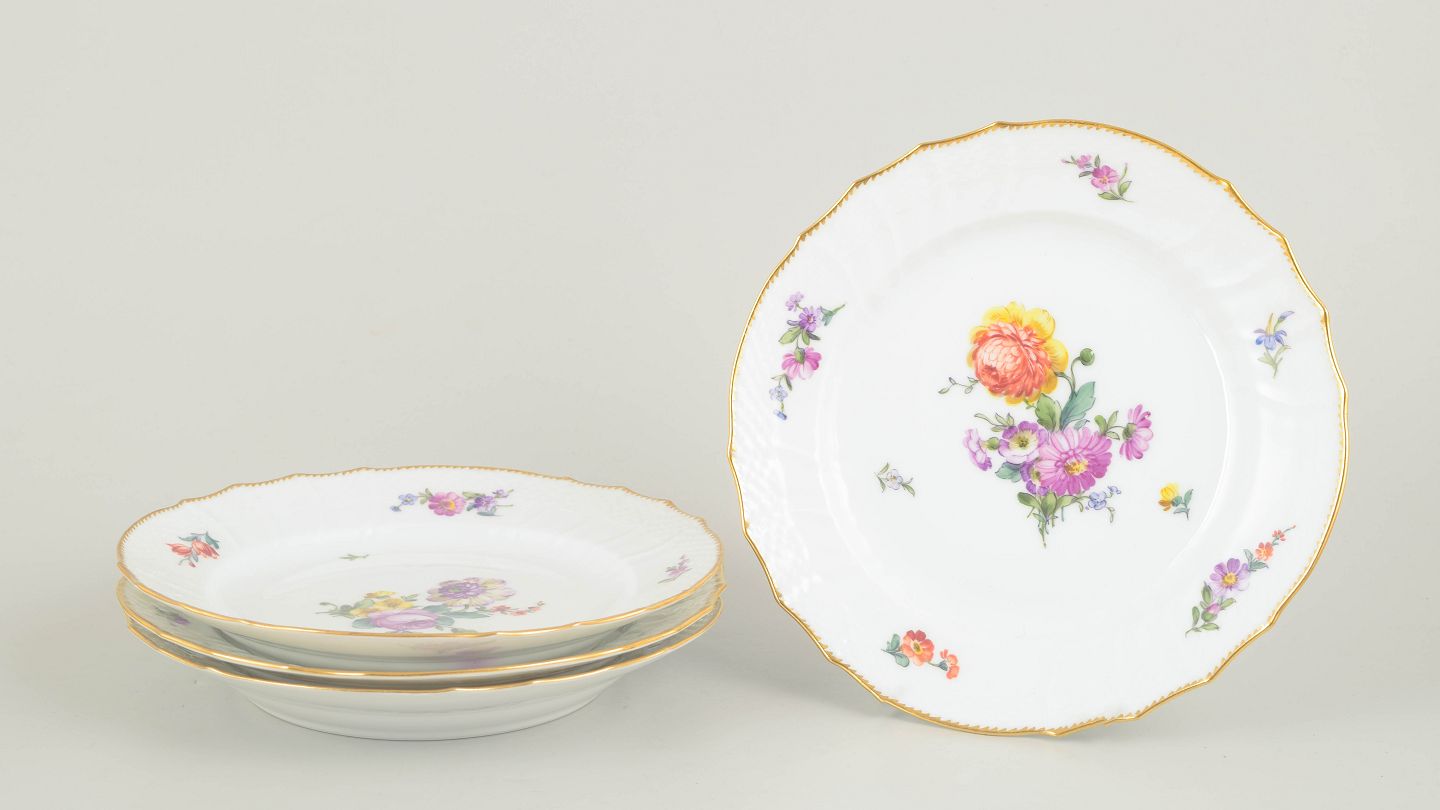 Royal Copenhagen, Saxon Flower set of four lunch plates.