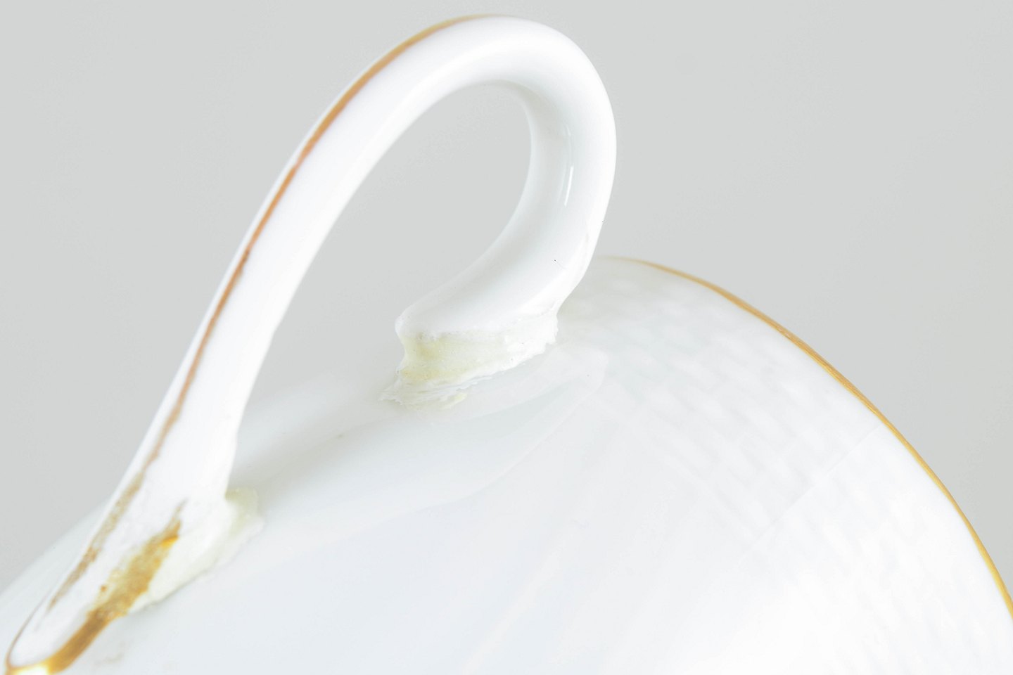 Royal Copenhagen was founded in 1775 in Copenhagen under the patronage of Queen Dowager Juliane Marie. The manufactory is internationally renowned for its hand-painted porcelain and high craftsmanship standards. The Saxon Flower decoration draws inspiration from 18th-century European porcelain traditions and was produced in several variations throughout the 20th century. Hans Hansen (1884–1940) established his silversmith workshop in Kolding in 1906 and became recognised for refined craftsmanship and elegant design, continued by the company during the mid-20th century.