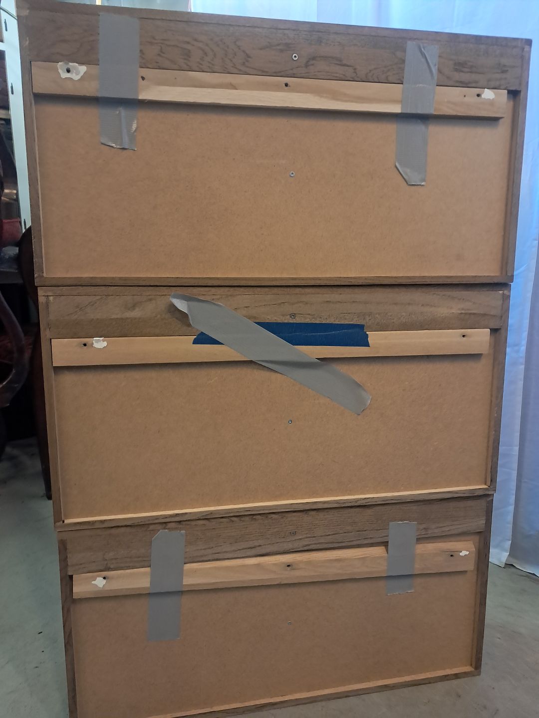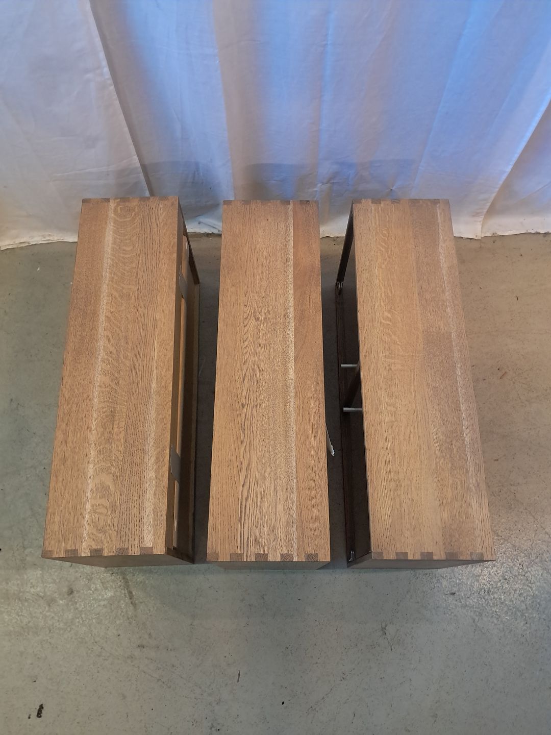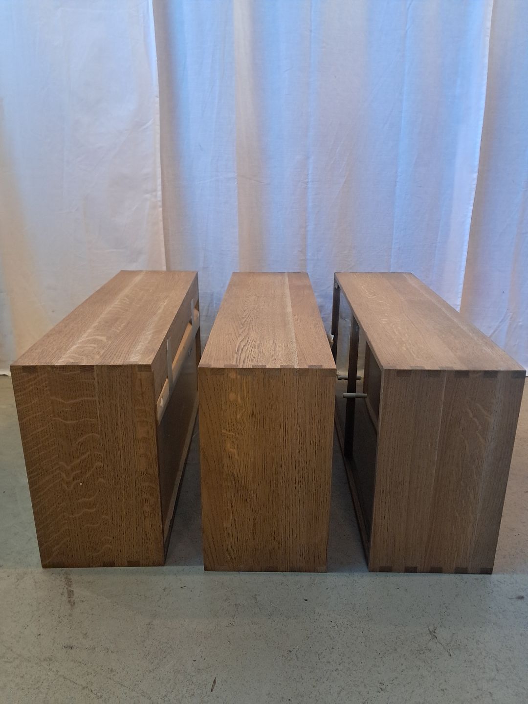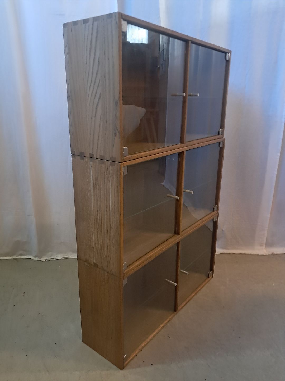 3 Vitrineskabe i massivt egetræ, fra 2000erne.