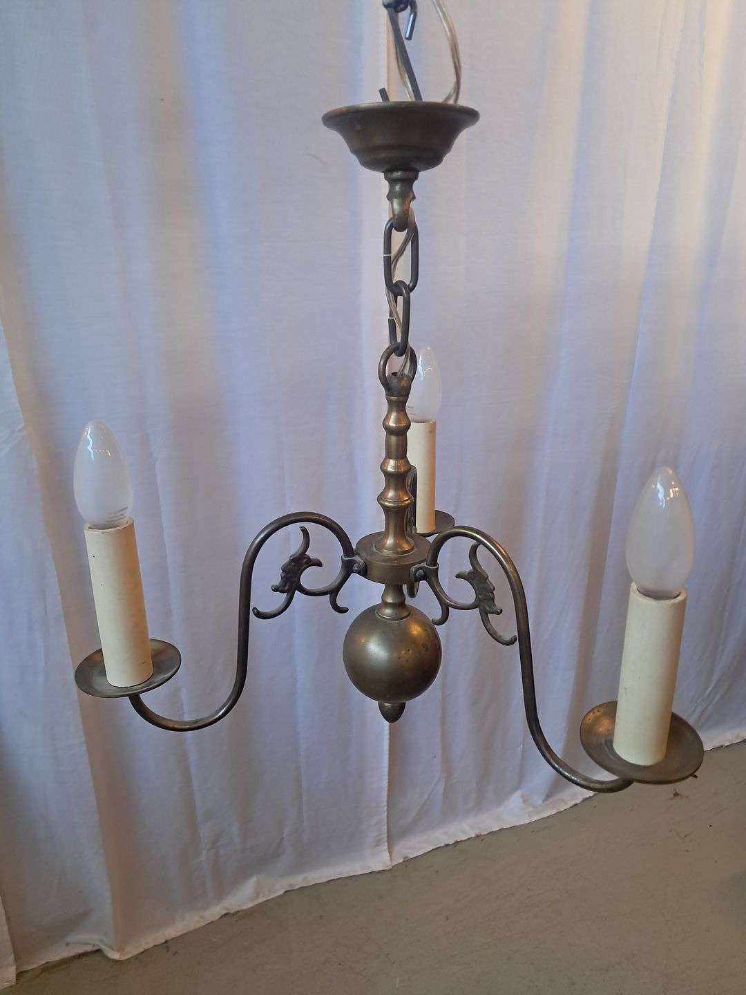 3-armet kirkekrone i bruneret messing, fra 1930erne.