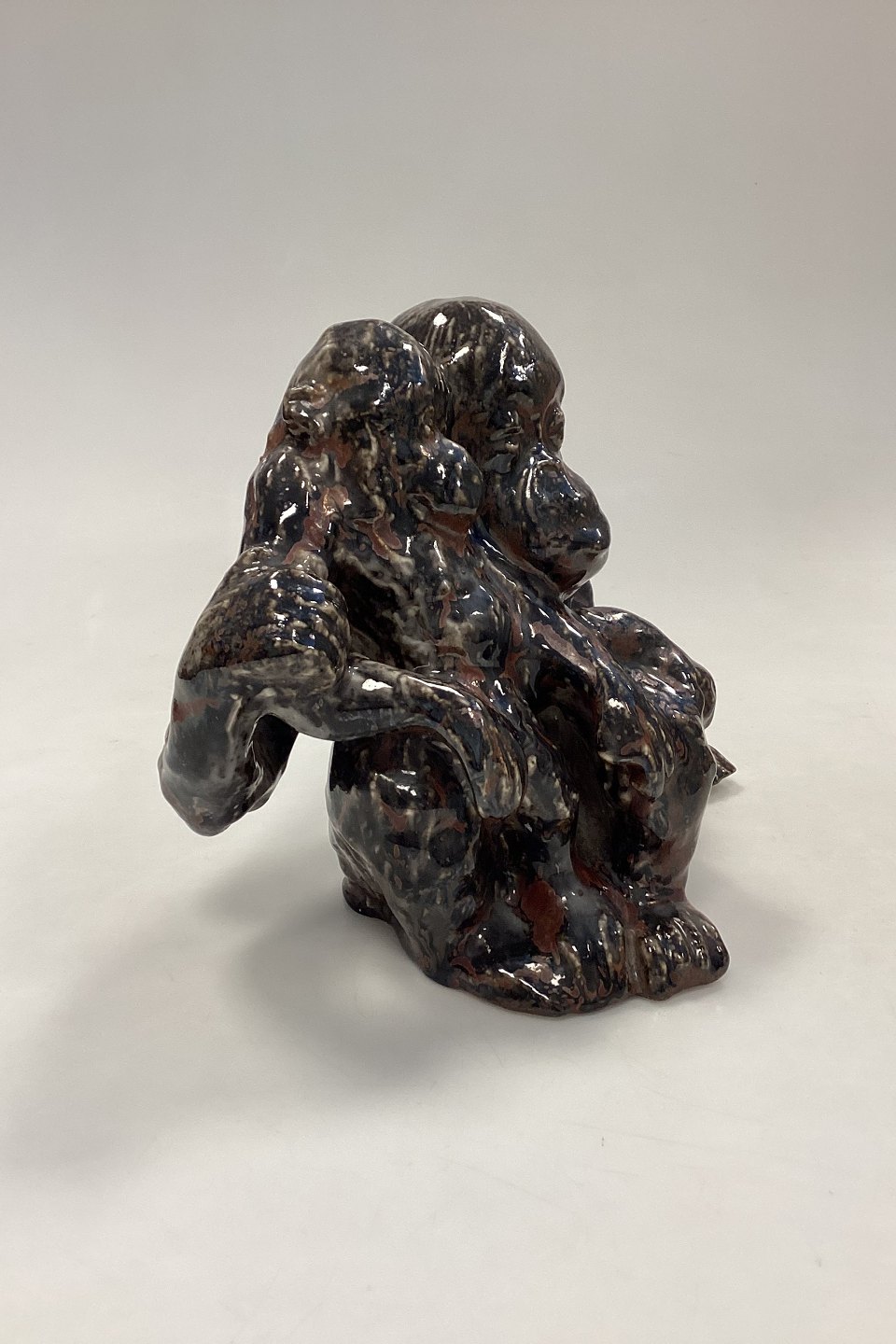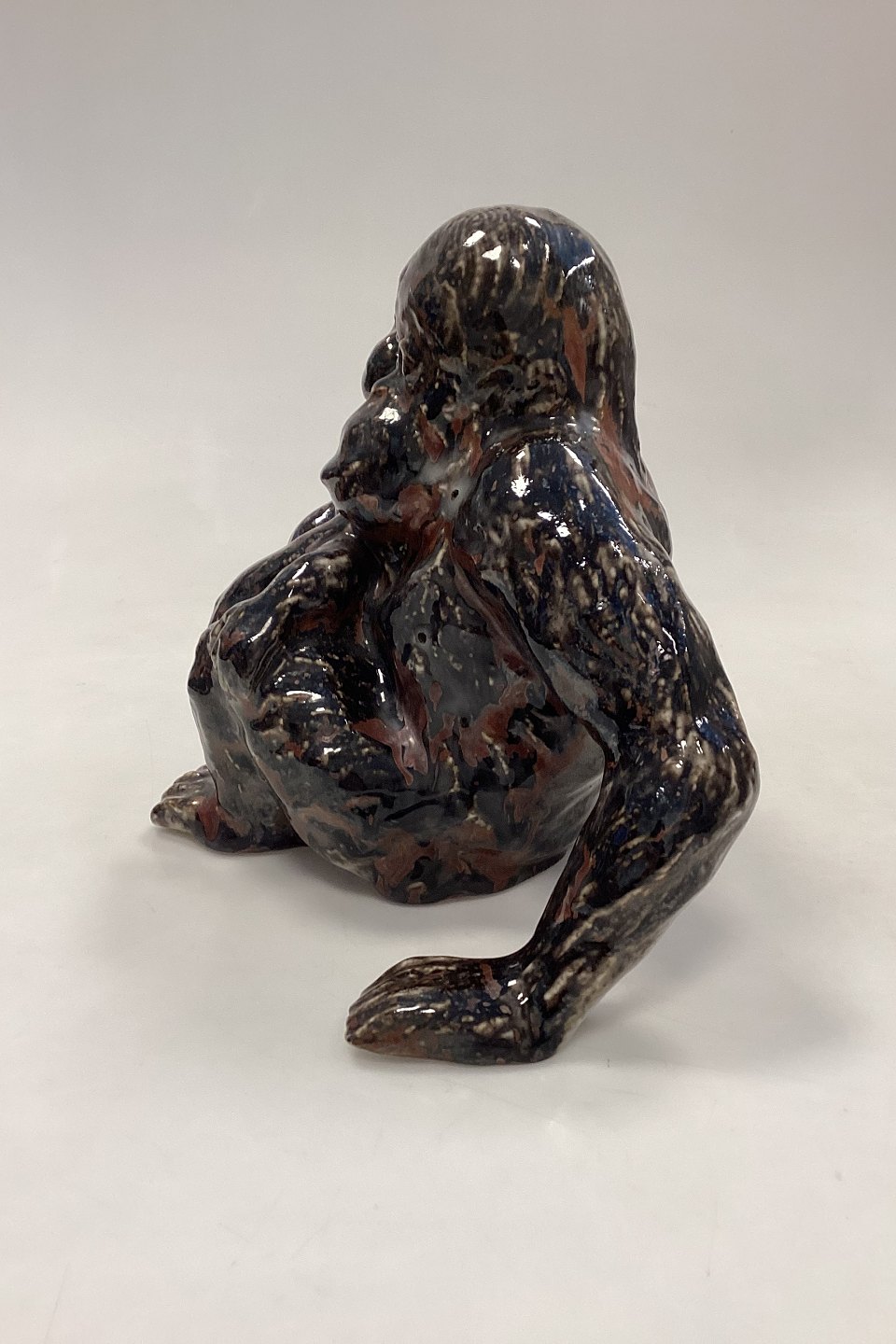 Bing and Grøndahl Stoneware Figurine - Orangutan/Monkey with Young by Knud Kyhn. Glaze in brown, blood red and white. There are 2 glaze holes on the left side of the mother monkey. The base is marked with the number 88.