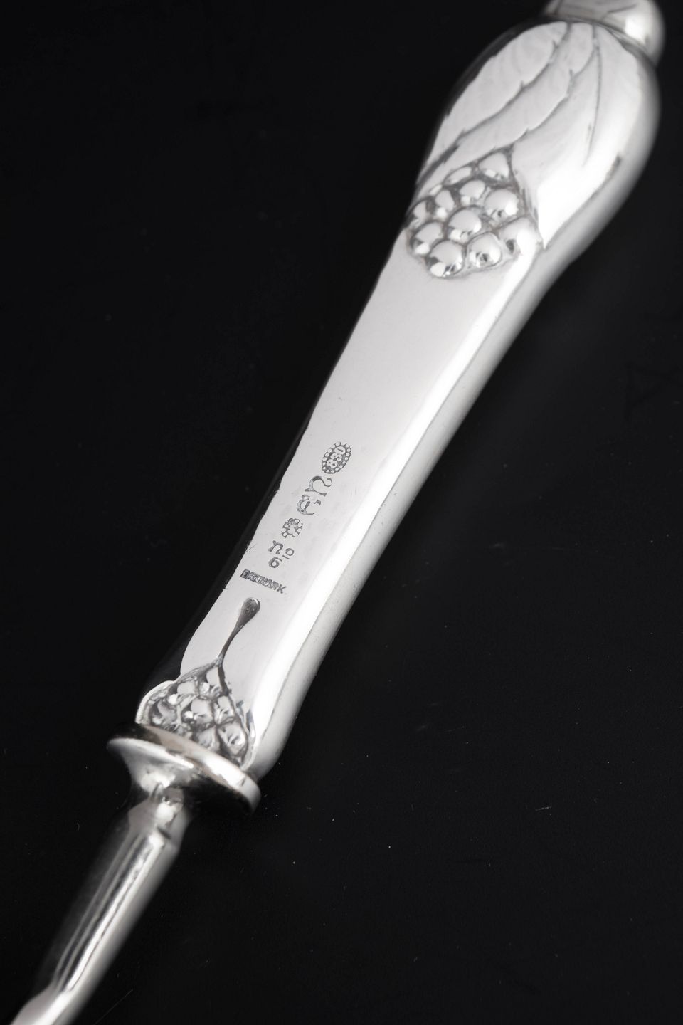 Evald Nielsen (1879–1958) was a Danish silversmith and a central figure in Danish silver design during the first half of the twentieth century. He founded his workshop in Copenhagen in 1905 and became known for elegant cutlery patterns and silver hollowware. During the 1920s his designs moved toward a more restrained and geometric language influenced by Art Deco while maintaining a high level of craftsmanship. Evald Nielsen’s works are today highly sought after by collectors of Danish silver.