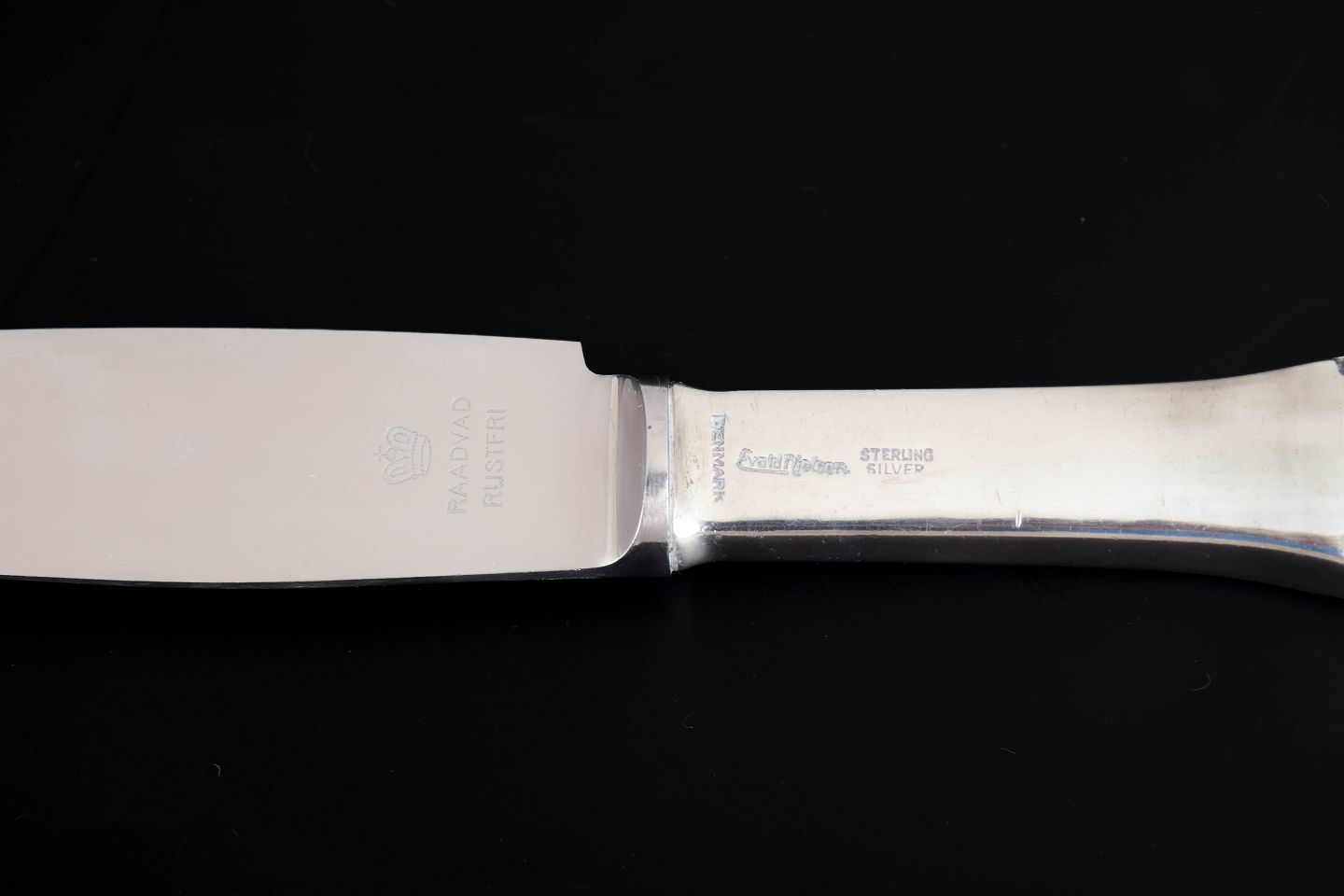 Evald Nielsen (1879–1958) was a Danish silversmith and an important figure in Danish silver design during the first half of the twentieth century. He founded his workshop in Copenhagen in 1905 and became known for elegant and functional cutlery patterns as well as silver hollowware. His designs evolved from Art Nouveau influences toward a more restrained classical style during the interwar period. Evald Nielsen’s works are today highly sought after by collectors of Danish silver.