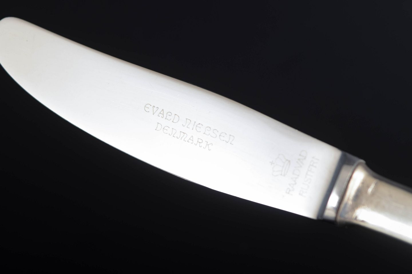 Evald Nielsen (1879–1958) was a Danish silversmith and an important figure in Danish silver design during the first half of the twentieth century. He founded his workshop in Copenhagen in 1905 and became known for elegant and functional cutlery patterns as well as silver hollowware. His designs evolved from Art Nouveau influences toward a more restrained classical style during the interwar period. Evald Nielsen’s works are today highly sought after by collectors of Danish silver.