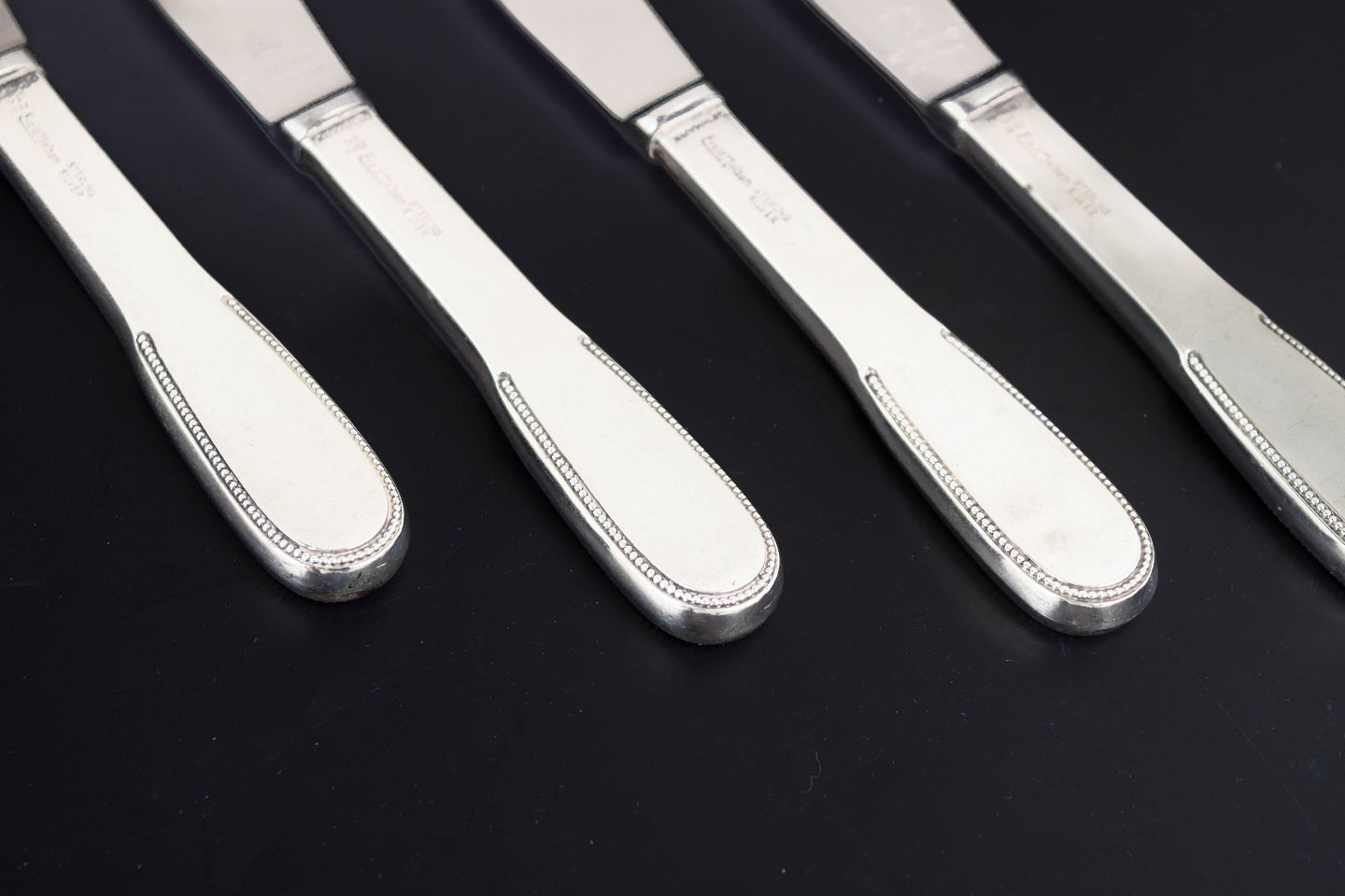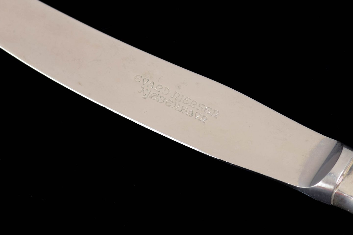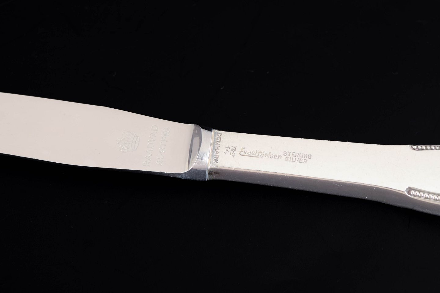Elegant lunch knives in sterling silver and stainless steel. Model number 14 with a classic softly rounded handle and plain blade. Produced by Evald Nielsen, length 17.7 cm.