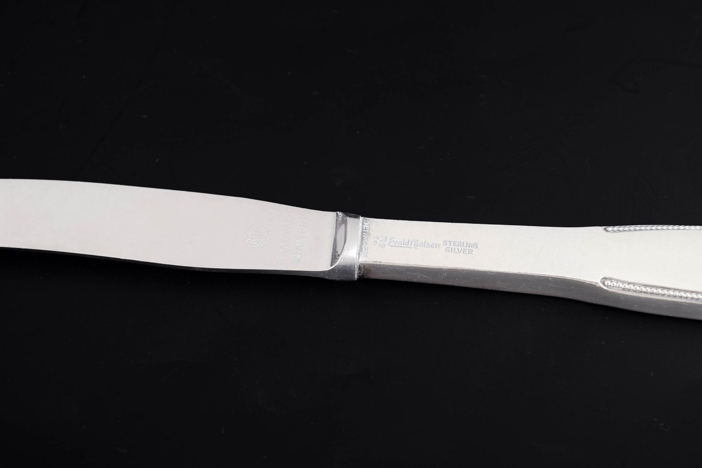 Evald Nielsen (1879–1958) was a Danish silversmith and a central figure in Danish silver design during the first half of the twentieth century. He founded his workshop in Copenhagen in 1905 and became known for elegant and functional cutlery and silver objects. His work evolved from Art Nouveau influences toward a more restrained and classical style during the interwar period, and his pieces remain highly sought after by collectors of Danish silver.