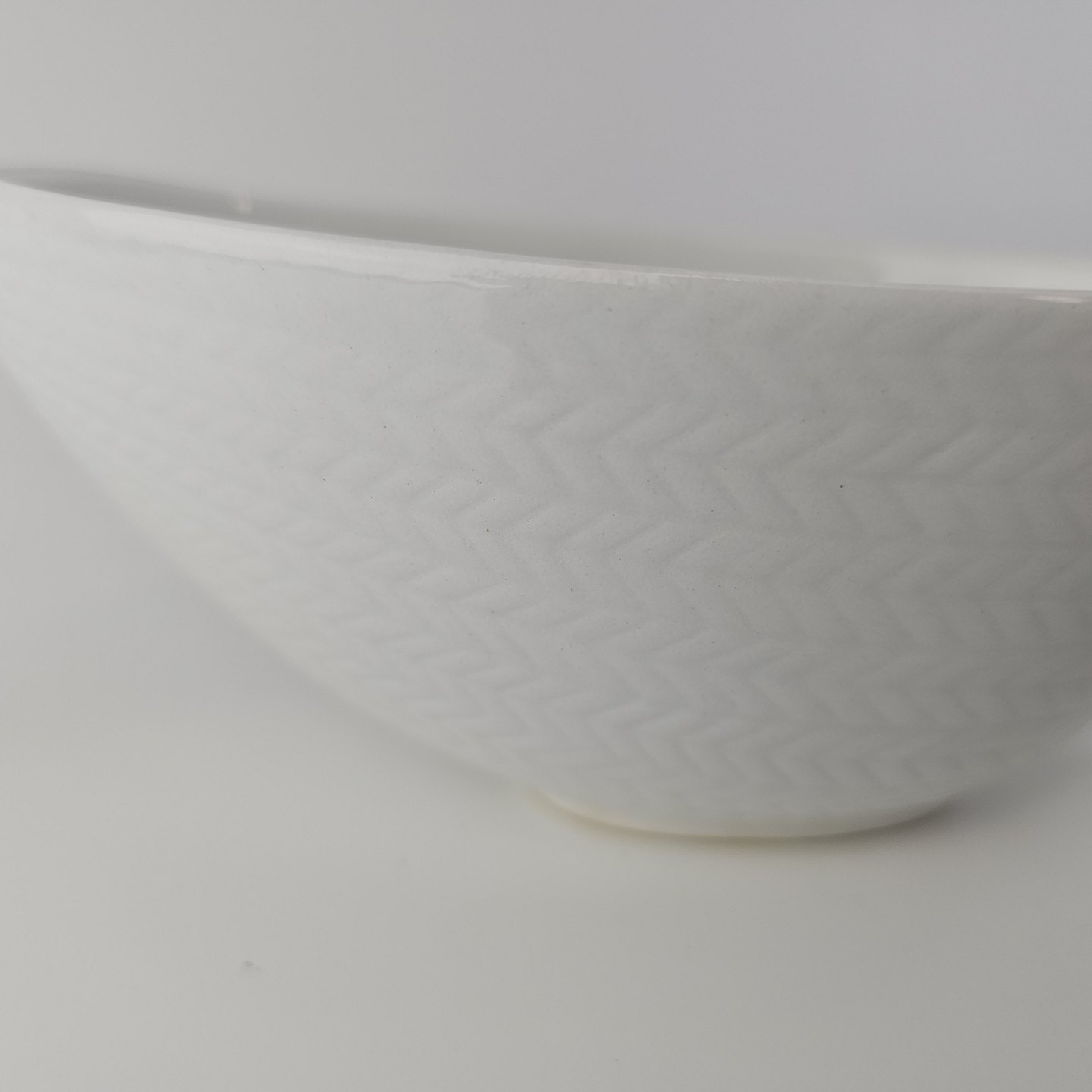 Stellet er fremstillet i hvid fajance med indstøbt sildebensmønster