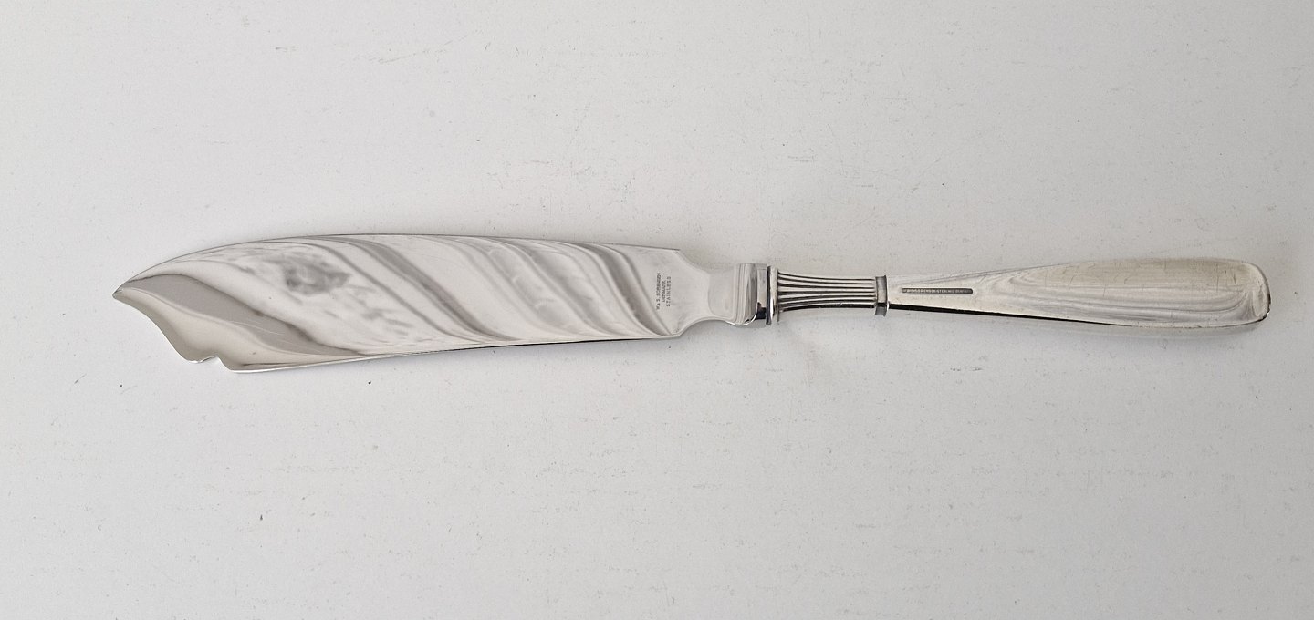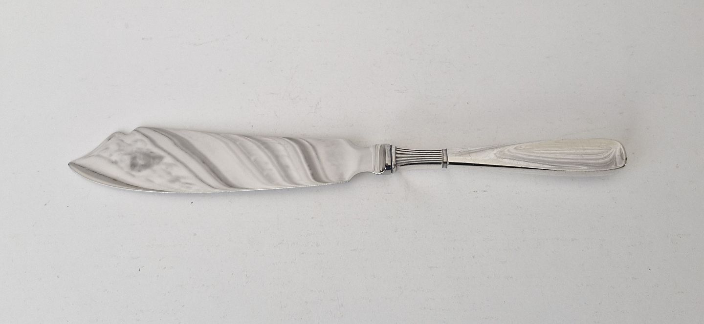 Ascot cake knife in sterling silver and steel.