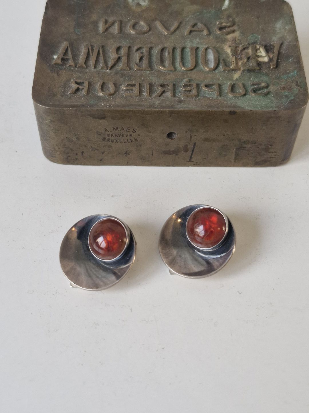 N.E.From vintage ear clip in sterling silver and amber