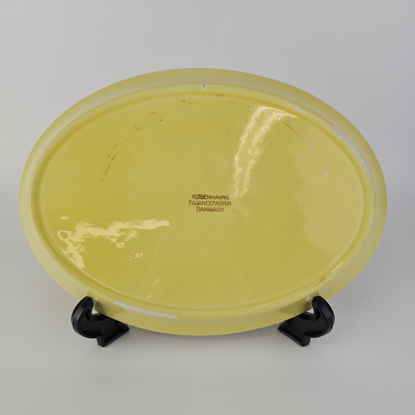 Ovalt fad i fajance fra stellet Gertrud fremstillet i perioden 1933-1939.