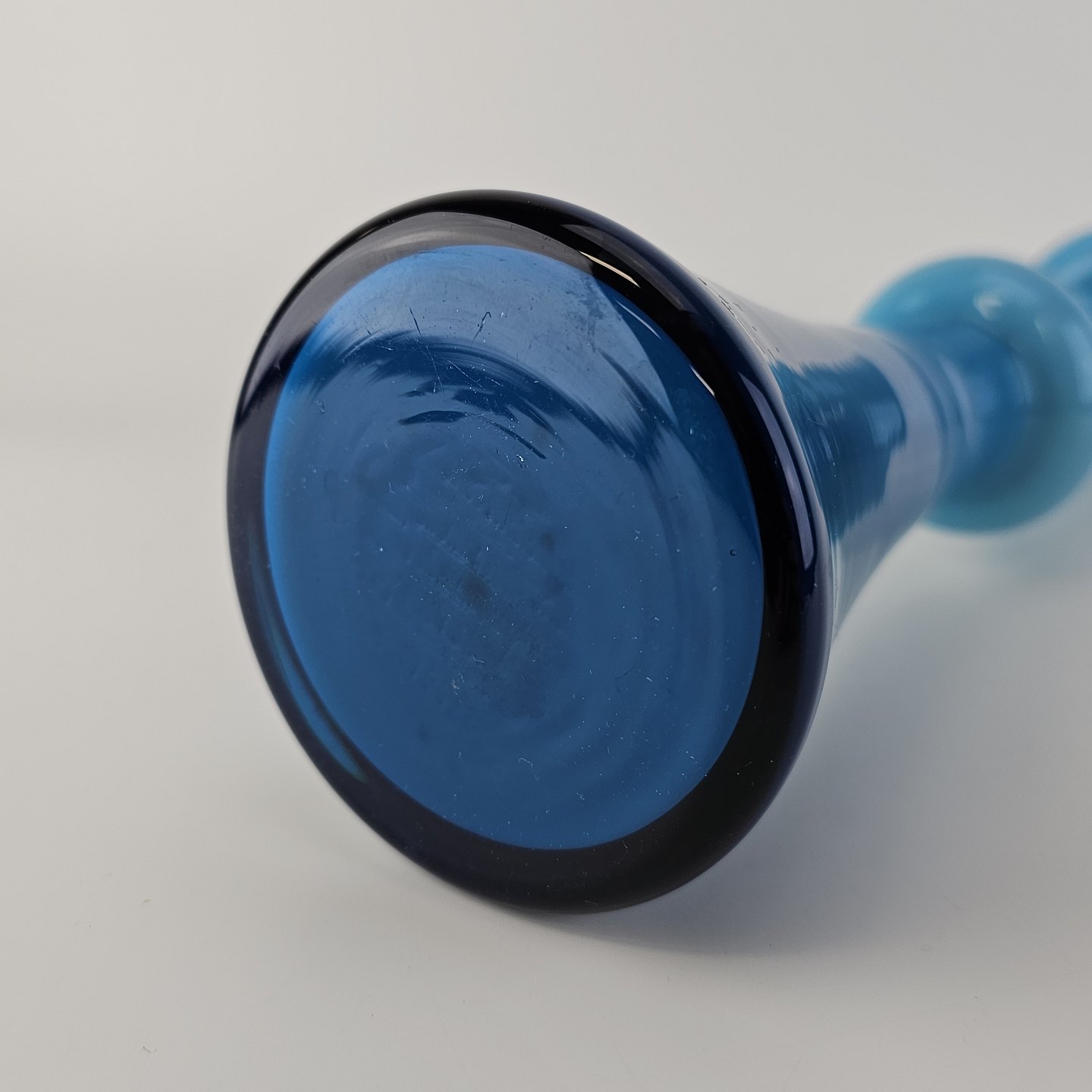 Vase i opal hvid mundblæst glas med blåt overfang