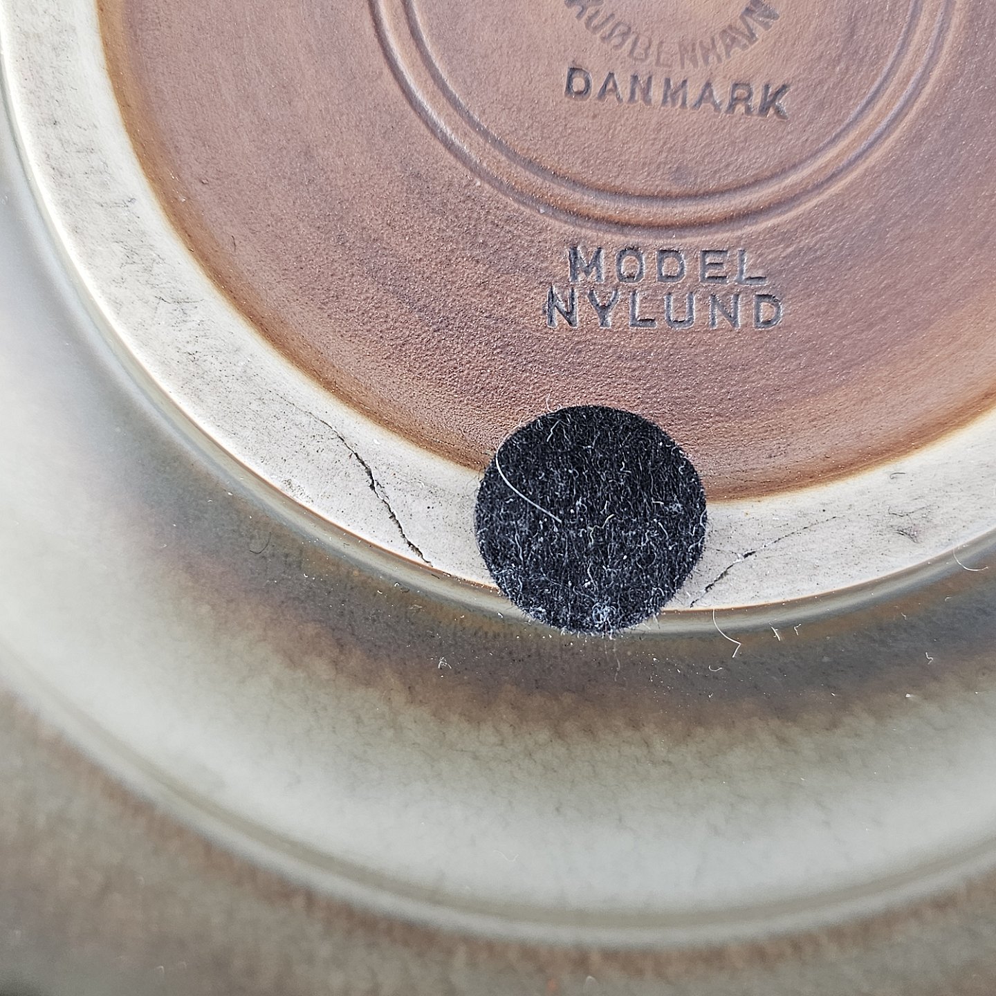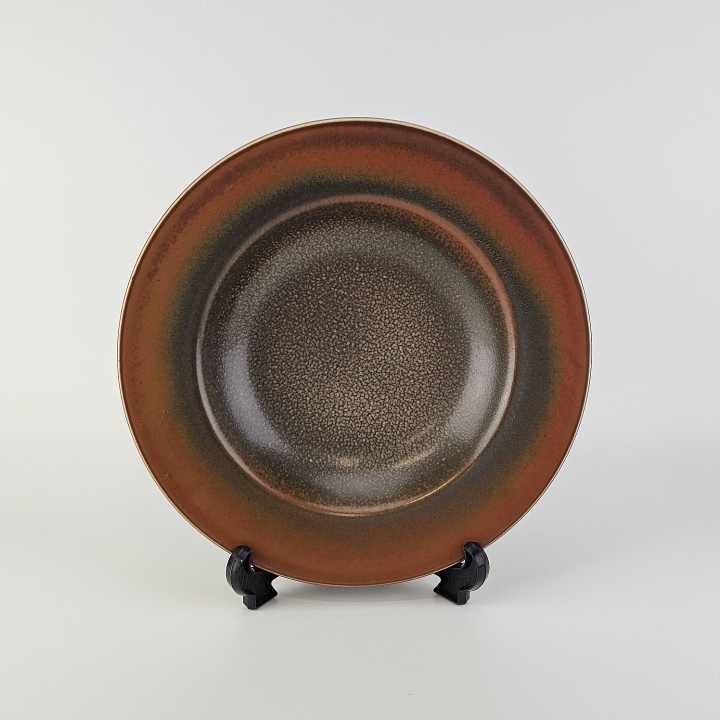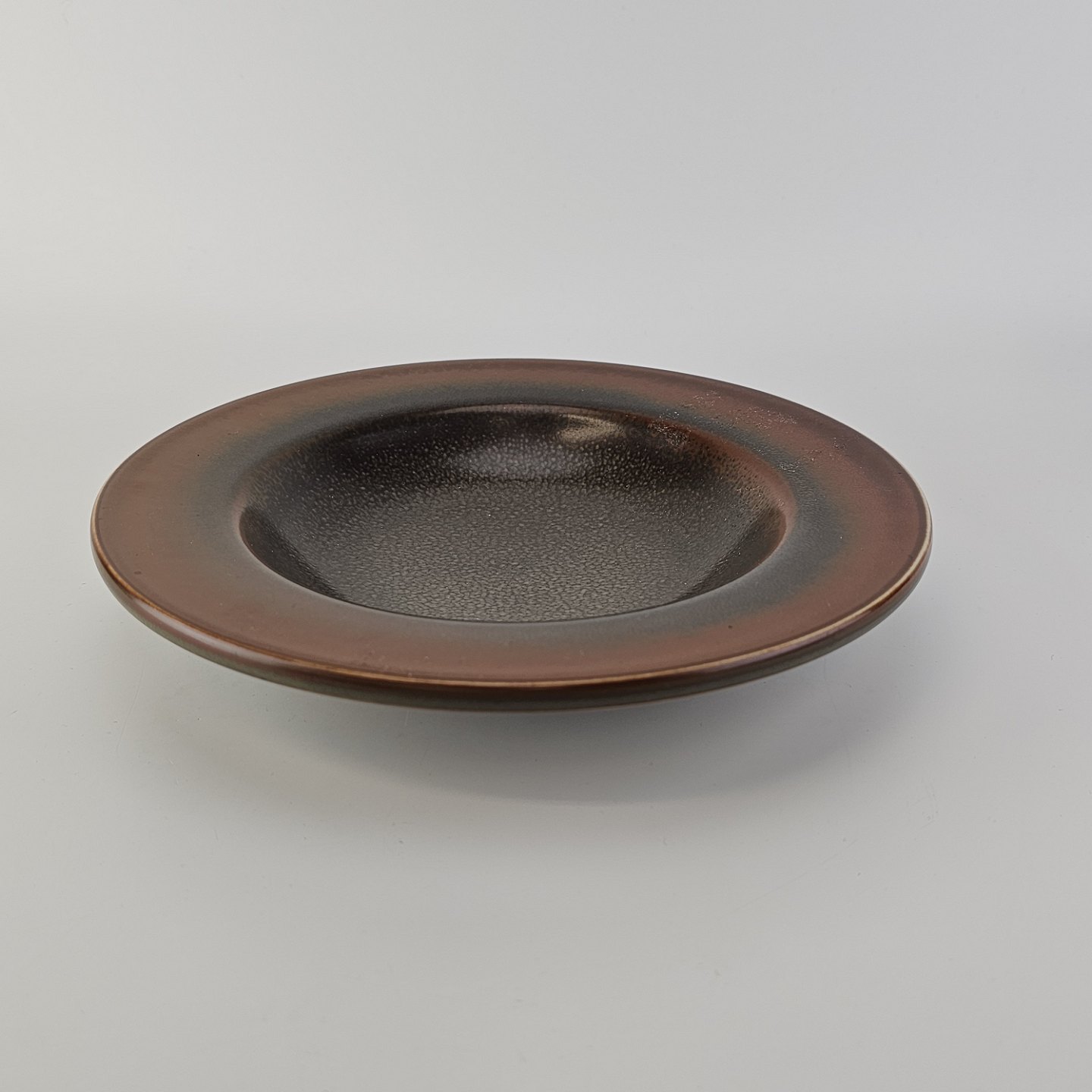 Rundt fad i stentøj med brun glasur. Nr. 2738, Model Nylund