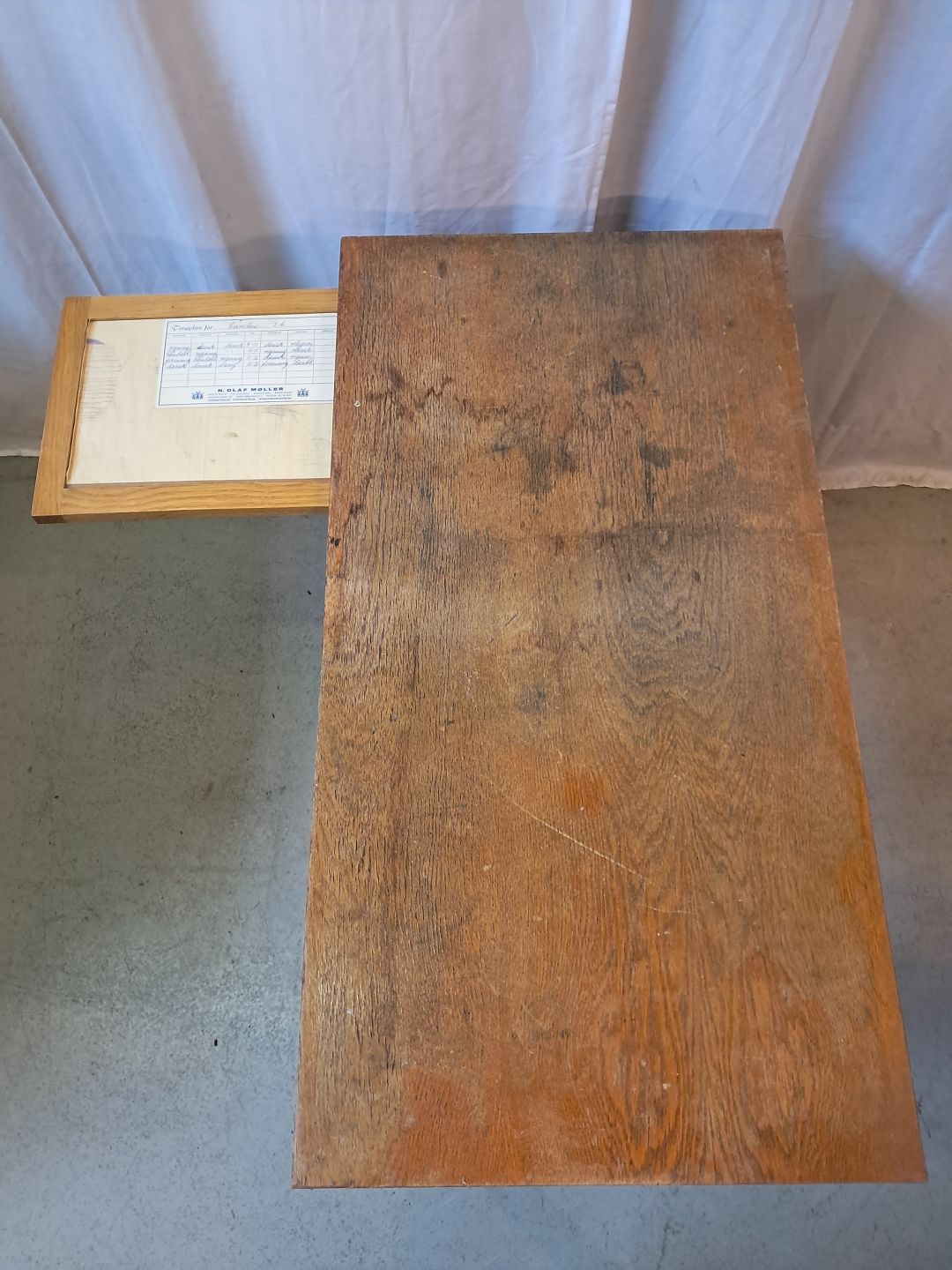 Børne skrivebord i fineret egetræ, fra 1950erne.